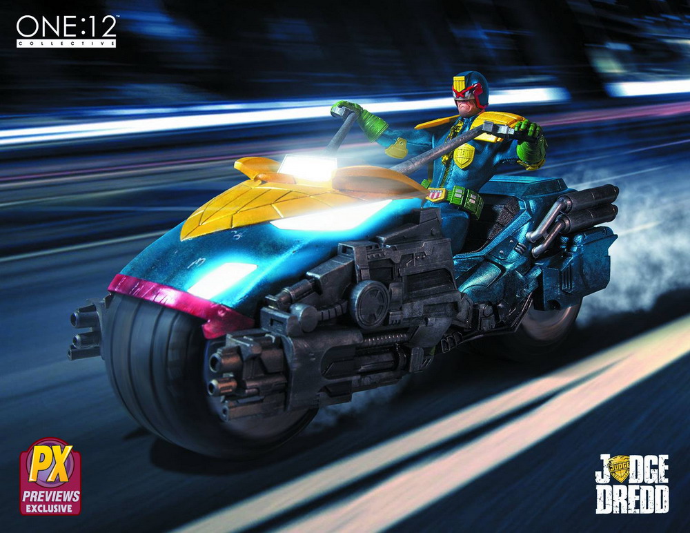 The PREVIEWS exclusive One:12 Collective Judge Dredd Action Figure with Bike box set is available to pre-order at any comic shop using item code OCT152450 priced at a SRP of $259.99. It is scheduled to ship in late January 2016.