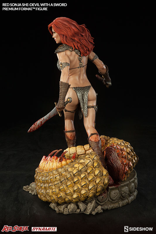 Sideshow presents the greatest swordswoman of the Hyborian Age; the Red Sonja – the She-Devil with a Sword Premium Format Figure. Standing 20” tall in a magnificent dynamic composition, Sideshow’s Red Sonja She-Devil with a Sword Premium Format Figure captures the legendary warrior-woman at her best – forging her own path, leaving only death and destruction in her wake.