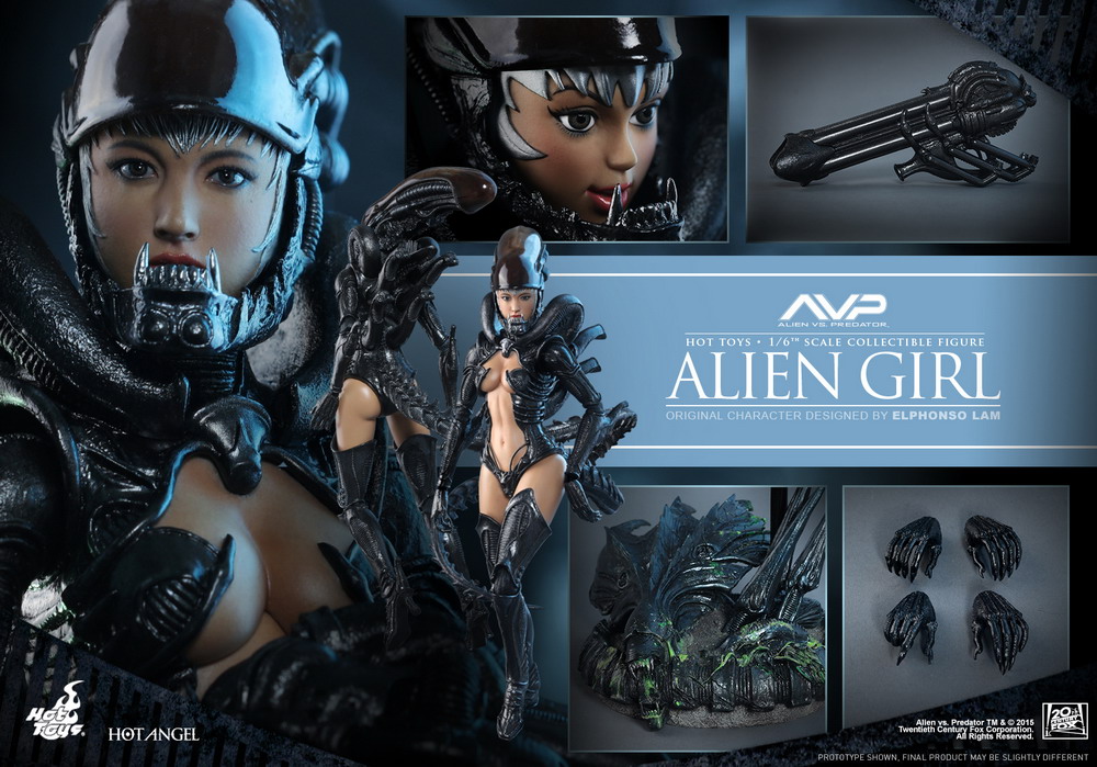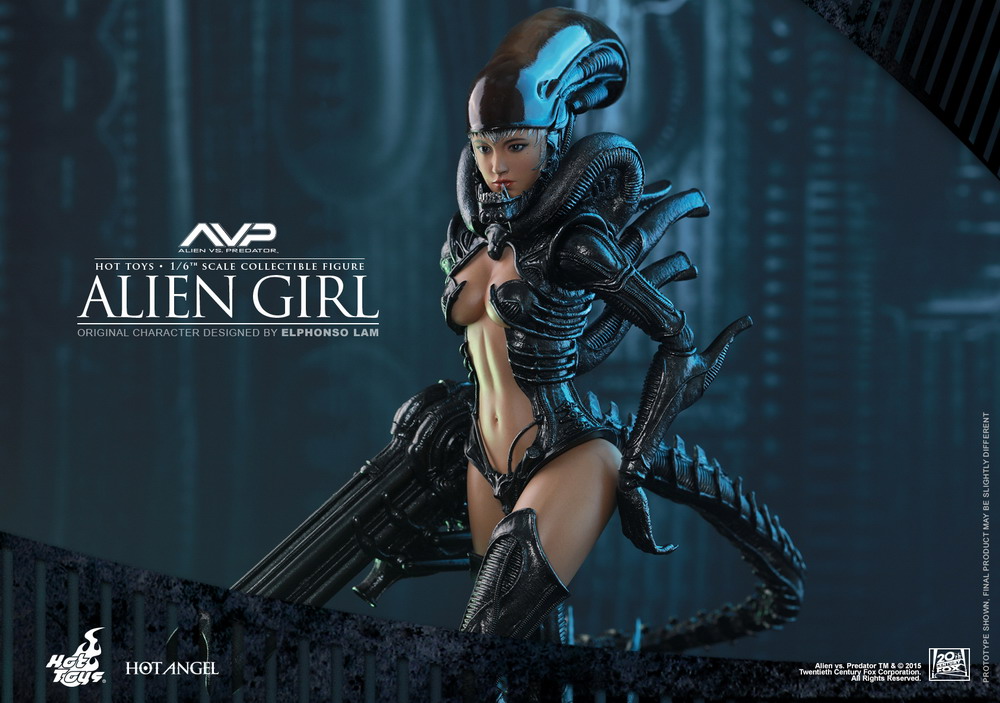 The AVP-inspired Alien Girl is an original character designed by Hong Kong multimedia artist Mr. Elphonso Lam. Her appearance is a unique combination of the stylistic Xenomorph and a sensuous human girl!