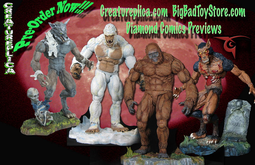 The figure line flies in the face of the current trend toward low detail “retro-style” mini figures, offering a highly detailed, realistic vision of iconic creatures with extensive articulation in a range of 7-9 inches tall. The figures will retail at $34.99, available though their website, creatureplica.com, and various online retailers including BigBadToyStore.com.