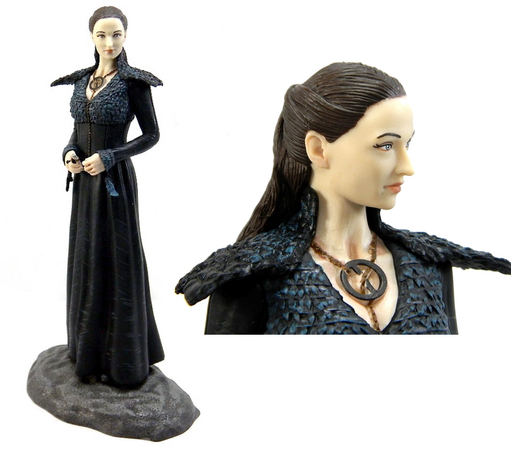 Sansa has had a rough time on Game of Thrones, especially in Season 5. She's a timid character, but she's starting to show some backbone. This is one of Dark Horse's more elegant sculpts, Sansa calmly posed with a note in her hand. A strong Sophie Turner portrait really helps this figure, though I'm a bit baffled by her dark hair. Sansa clearly has red hair on the show. Hummm. Regardless, her head sculpt is nicely done and her dress, while simple, has a regal charm.