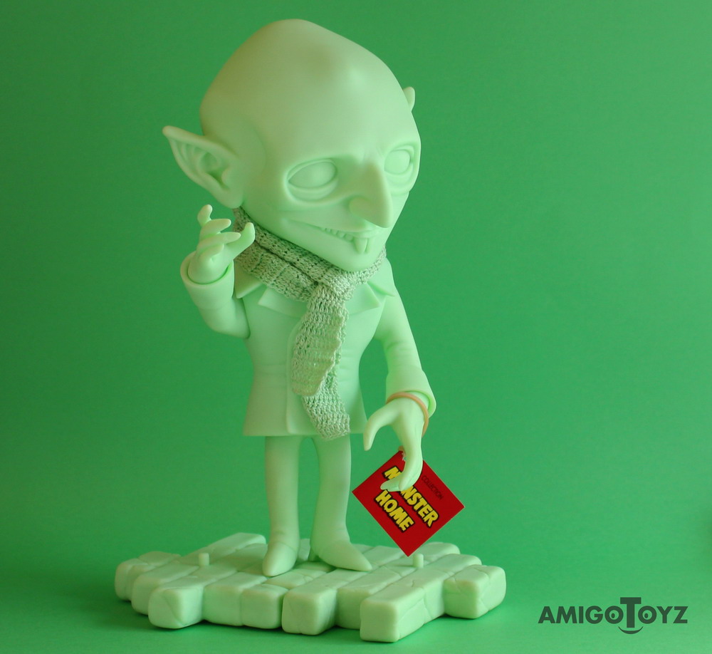 Independent Spanish toy maker Amigo Toyz unveils a festive new colorway of their Uncle Nosferatu vinyl figure (see our story HERE). The All-Green Uncle Nosferatu vinyl figure stands 10 inches tall, features 6 points of articulation and includes a scarf and 2 bases. While Amok Time carried the original figure, All-Green Nosferatu is available through eBay Spain priced at 40 euros + shipping (or 37 euros + shipping if you buy directly from Amigo Toyz info@amigotoyz.com).