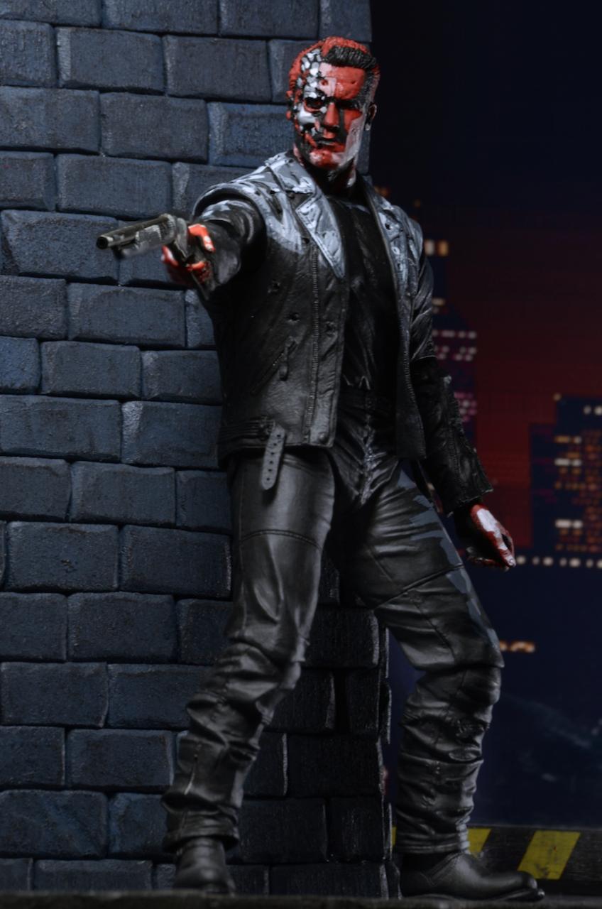 NECA provides a look at their next Classic Video Game Appearance action figure: the T-800 as seen in 1991’s Terminator 2: Judgment Day video game. The 7-inch figure utilizes NECA's new “Ultimate” body, with nearly 30 points of articulation. Special paint deco reproduces the game’s pixilated look, and the window box packaging re-creates the look and feel of the classic video game cartridge box. Includes two interchangeable heads (regular and battle-damaged) and a shotgun accessory.