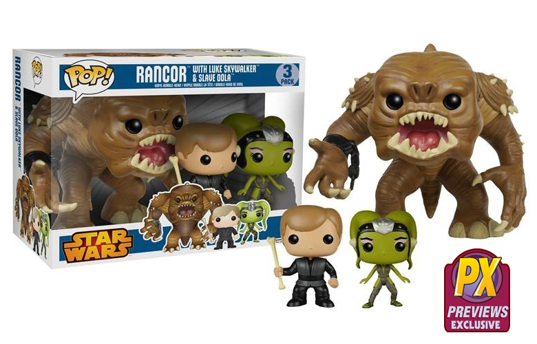 Feel the Force of Funko and PREVIEWS with an exclusive POP! Star Wars: Rancor with Luke & Slave Oola vinyl figure 3-pack. Perfect for Star Wars fans, the 3-pack is available to pre-order exclusively from the January PREVIEWS catalog and is scheduled to arrive in comic book shops in late May.
