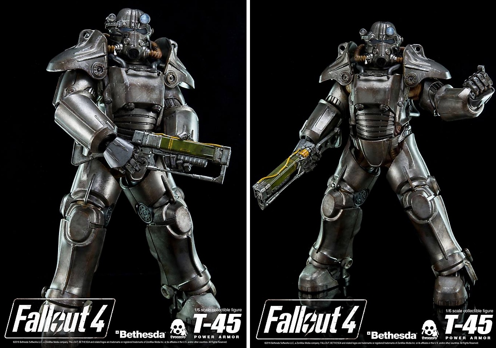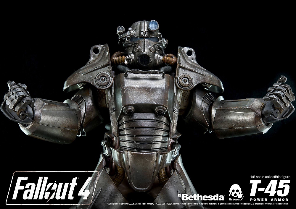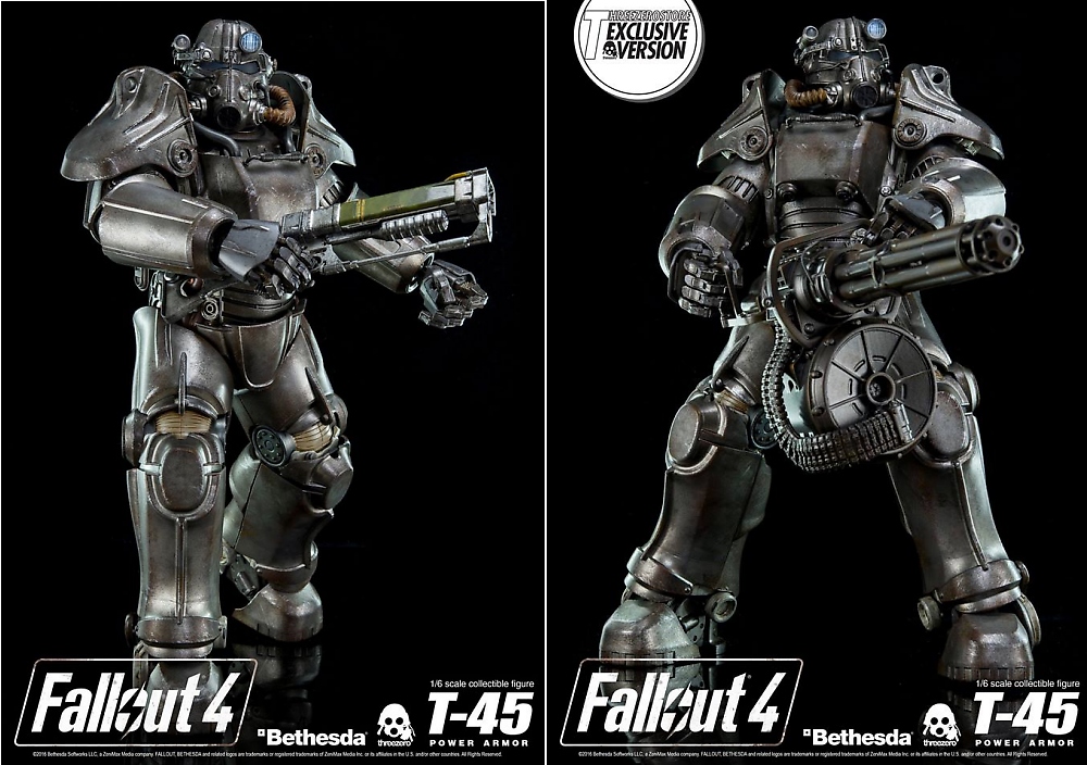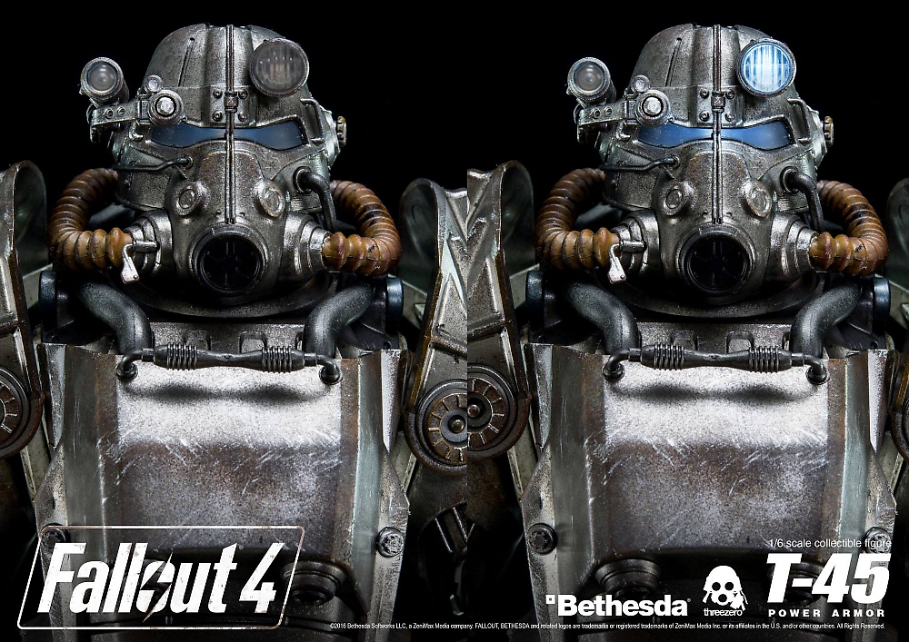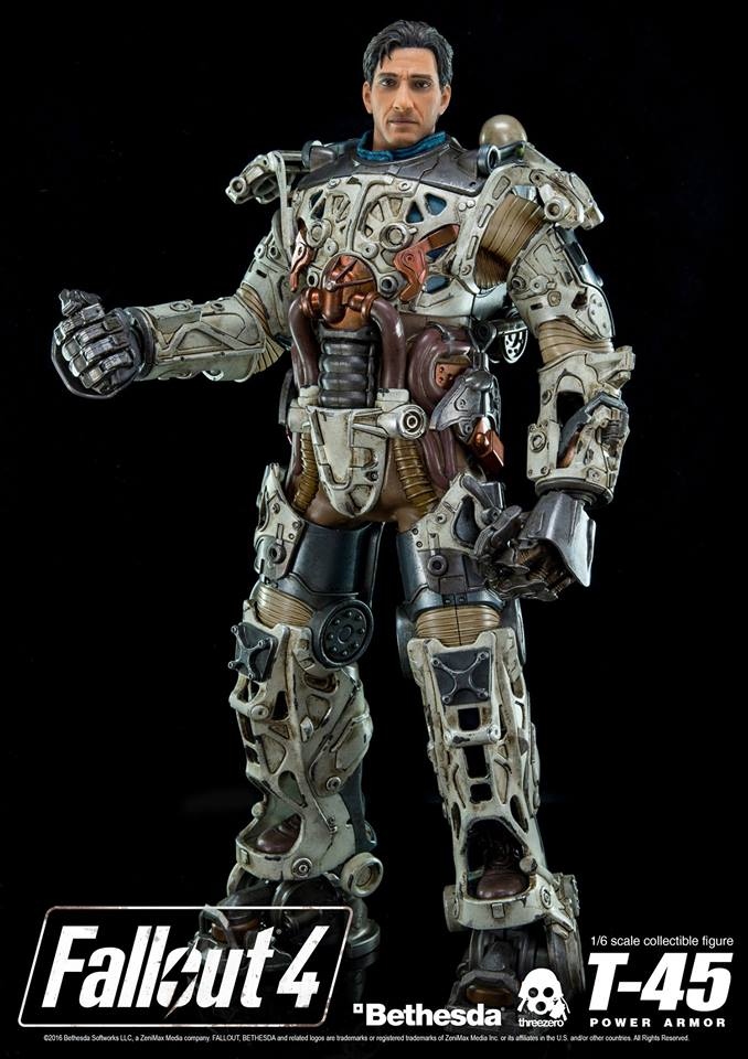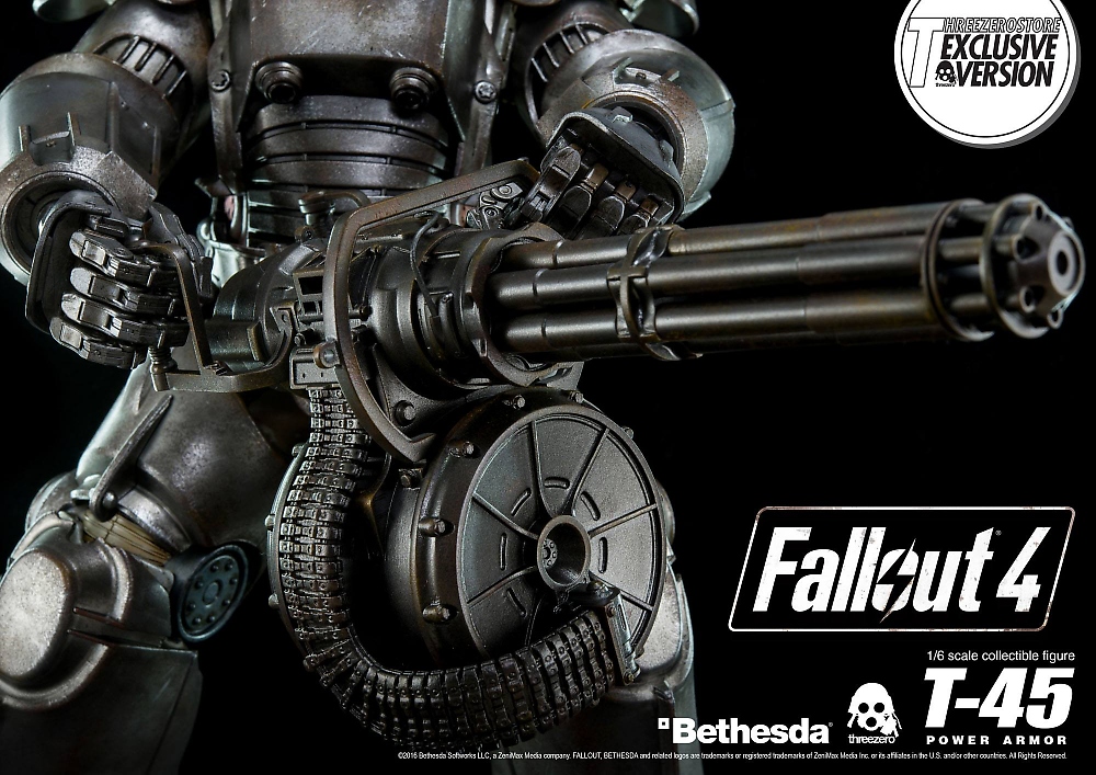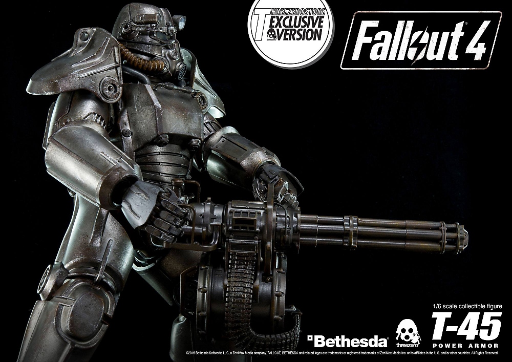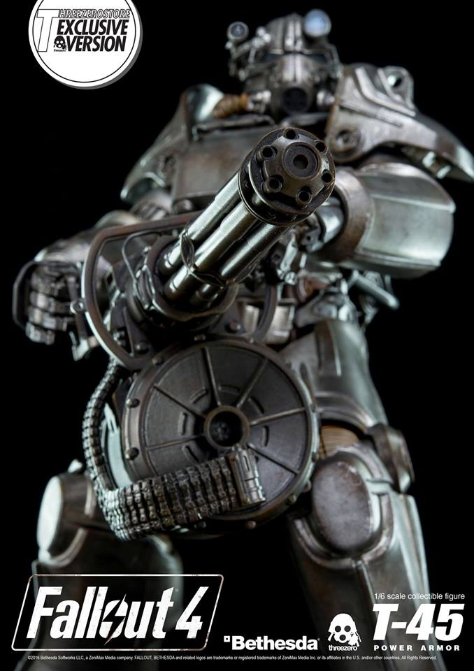 ThreeZero unveils their anticipated 1:6th scale figure based on the hit video game, Fallout 4: the T-45 Power Armor. This figure will be available for pre-order at www.threezerostore.com starting from January 28th 9:00AM Hong Kong time and available in two variants: a retail version ($380) and a ThreeZeroStore Exclusive with bonus Minigun ($398 with free worldwide shipping).
