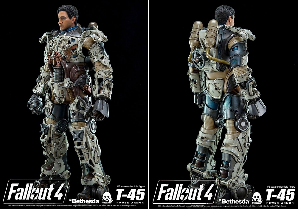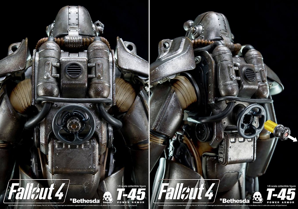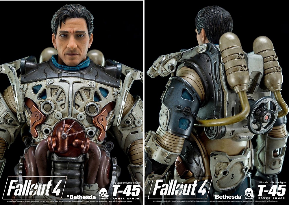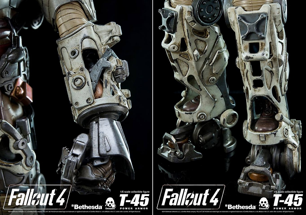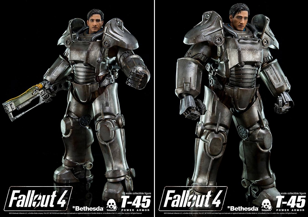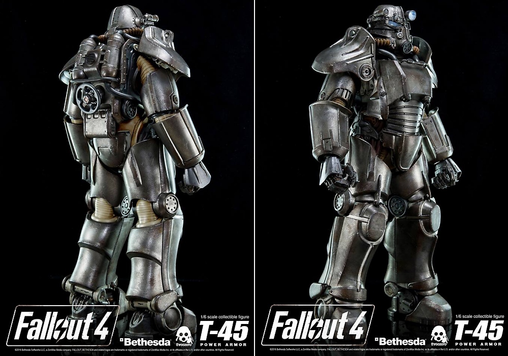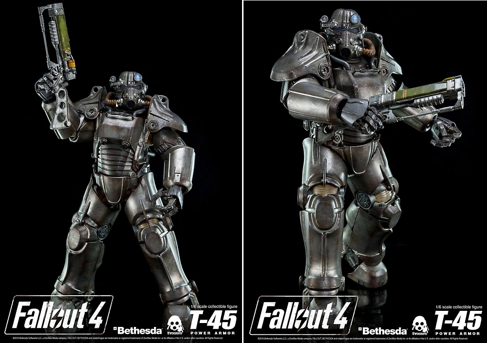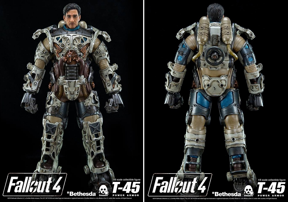 ThreeZero unveils their anticipated 1:6th scale figure based on the hit video game, Fallout 4: the T-45 Power Armor. This figure will be available for pre-order at www.threezerostore.com starting from January 28th 9:00AM Hong Kong time and available in two variants: a retail version ($380) and a ThreeZeroStore Exclusive with bonus Minigun ($398 with free worldwide shipping).
