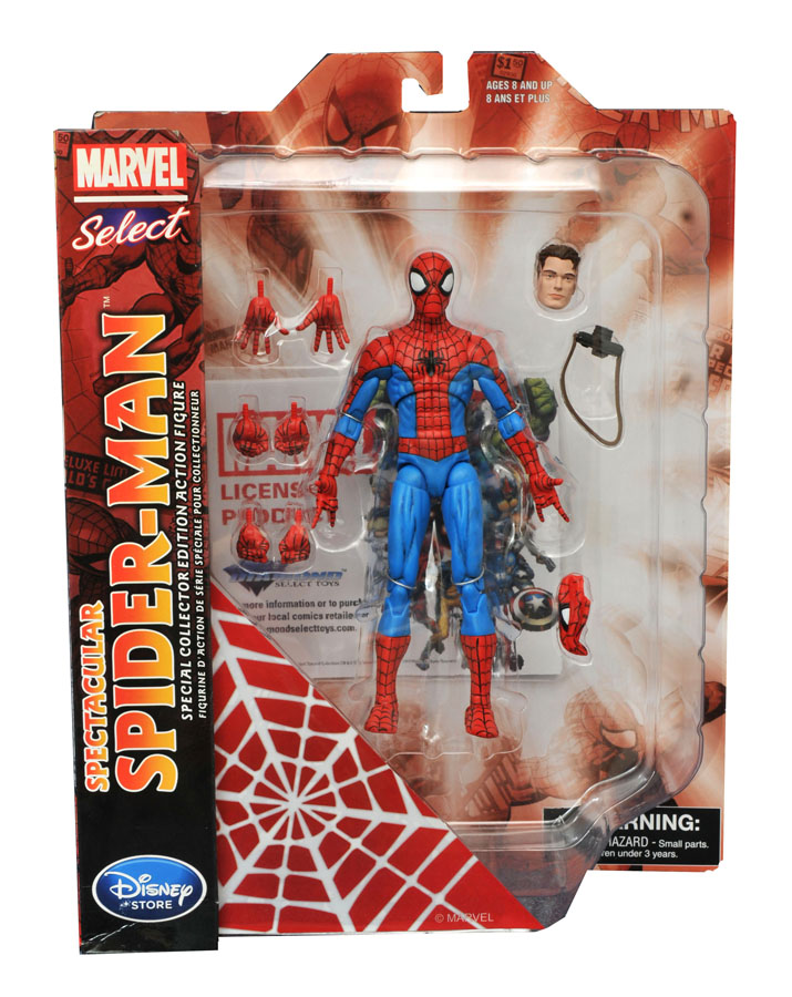The Marvel Shop has teamed up with Diamond Select Toys for many past exclusive Marvel Select figures, but this is the one everyone has been waiting for! Starting January 12, Marvel Shop customers can pre-order a new, exclusive 7-inch action figure of the Spectacular Spider-Man, in his classic comic-book costume, with multiple interchangeable parts.