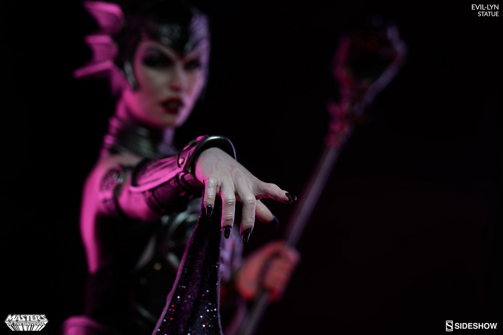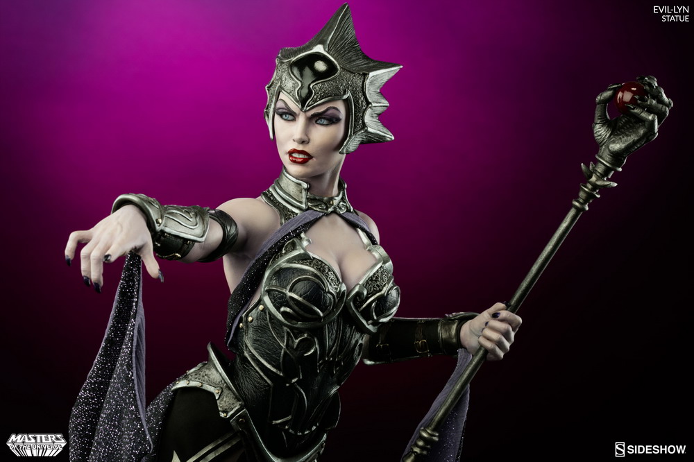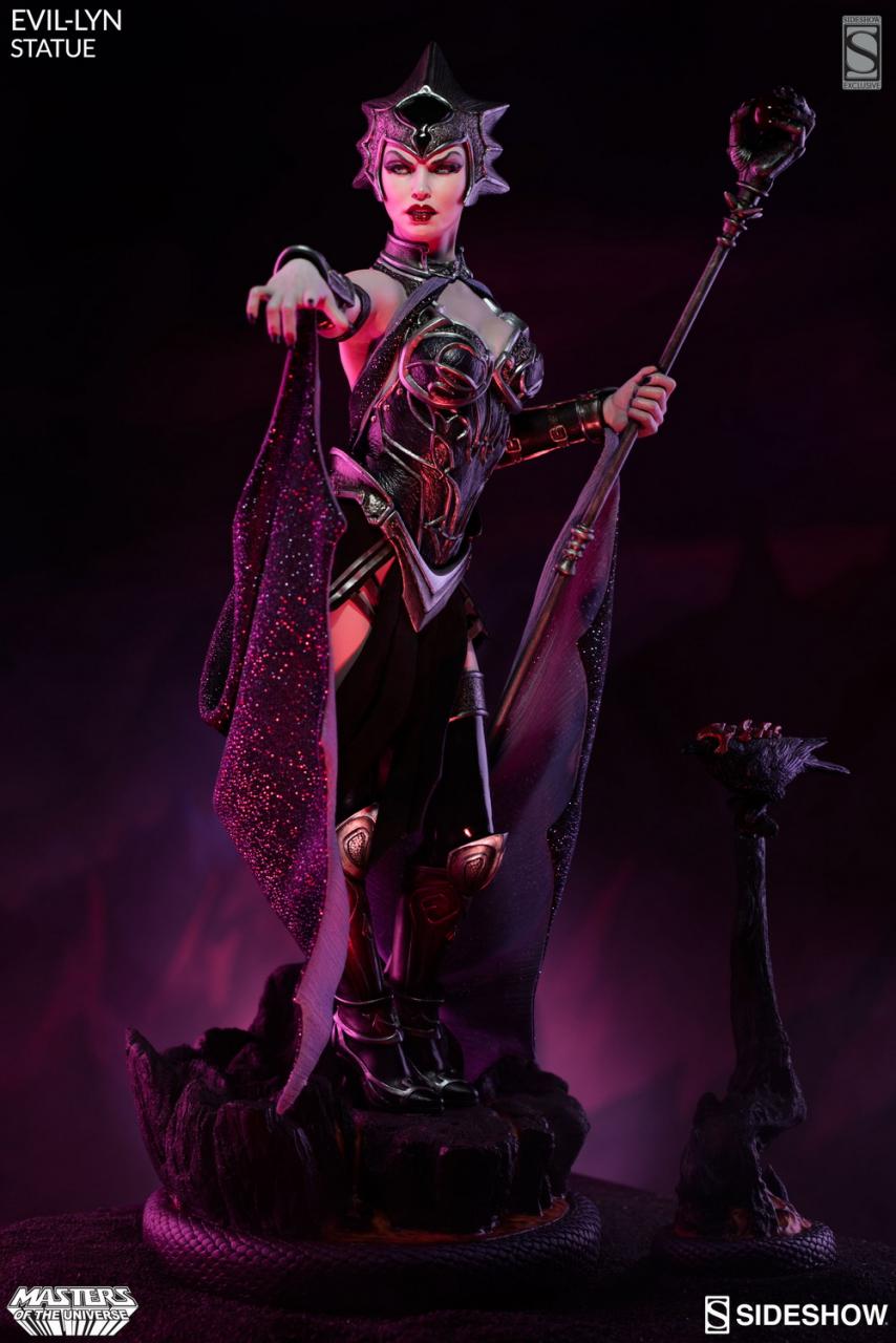 Joining Skeletor and He-Man in Sideshow's statue collection inspired by the popular 80’s cartoon series Masters of the Universe, comes the stunning sorceress, Evil-Lyn! The conniving witch strikes a dramatic pose at the base of Snake Mountain in her signature headdress, intricate armor, and a dazzling costume which perfectly frames the serpent tattoos winding down her back. The Sideshow Exclusive will see Evil Lyn joined by her faithful falcon Screeech, with an additional bonus display piece (shown below).