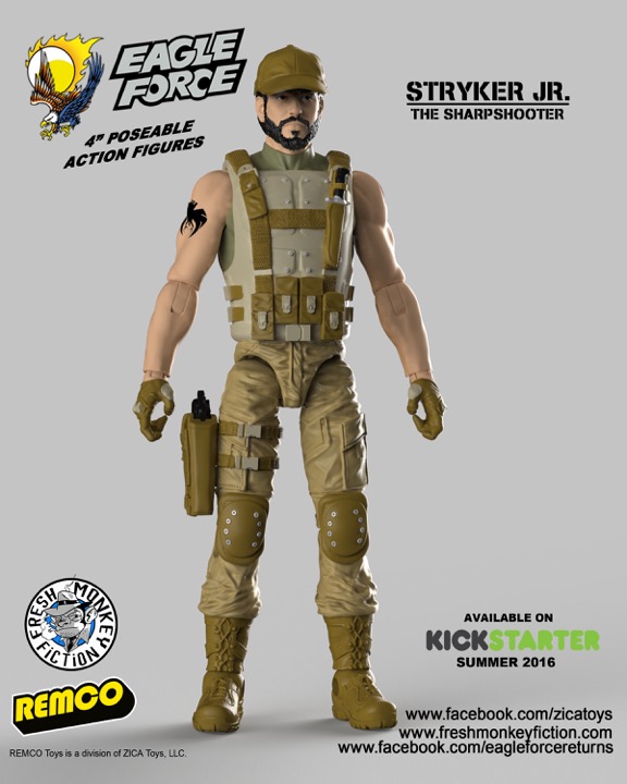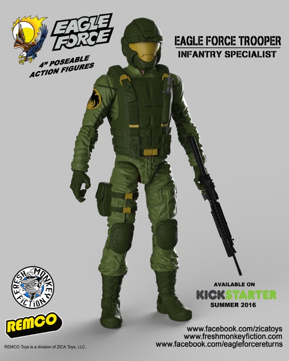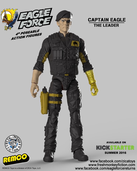 Fresh Monkey Fiction is kicking off the return of Eagle Force by launching a Kickstarter campaign for a set of Eagle Force Trading Cards. This is a great way for fans to get reacquainted with Eagle Force before the action figures kickstart later this summer. This set of 20 cards will explore some of the original characters and also provide some hints to what characters will be returning later this year.