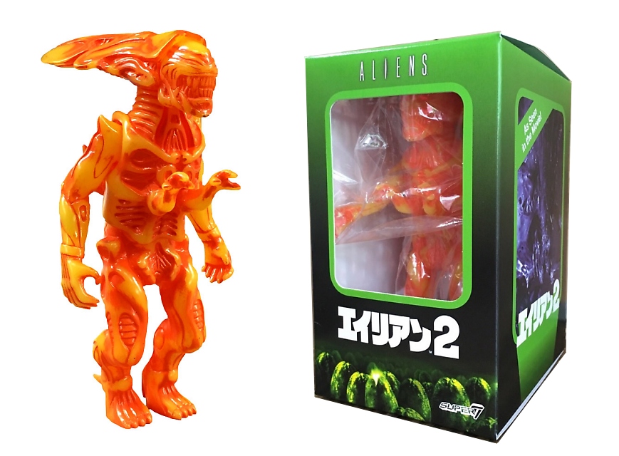 From Secret Base and Super7 for Alien Day 2016: The terrifying fury of the Alien Queen Molten Magma figure. The Queen comes packaged in an Aliens Japanese window box.