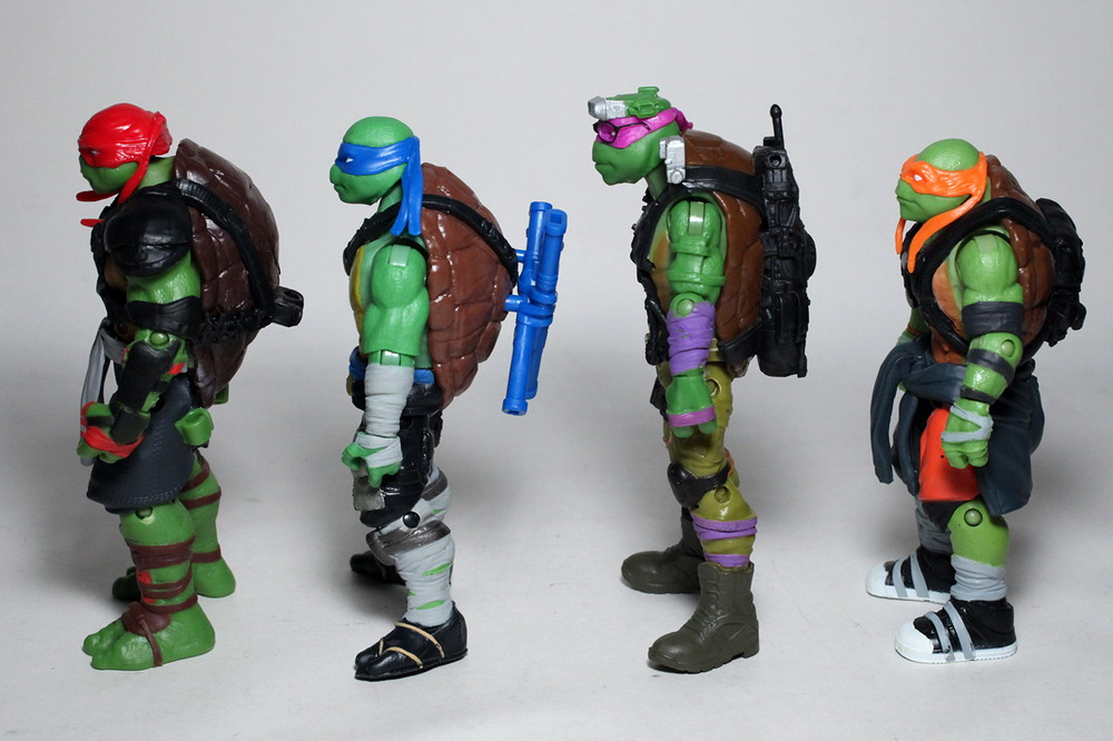 The sculpt on all four turtles are completely unique with practically no parts shared amongst them, which makes sense given how different they do look in the film. Gone are the days where you choose your favorite based on color or weapon, as these turtles are as different as can be with different bodies, height, and width. One thing I should note is that all turtles are sculpted wearing either shorts or pants and some even wear shoes or boots. Slightly different from the on-screen turtles are their shells, which seem to be humongous in the film, are shrunk down severely in toy form.