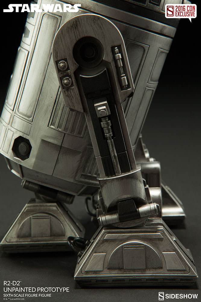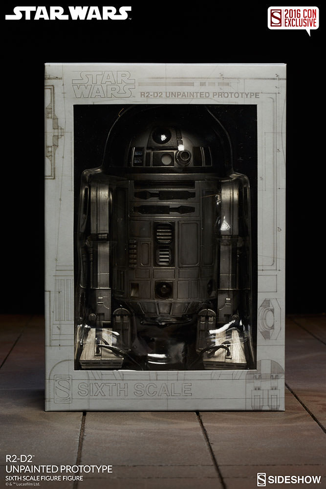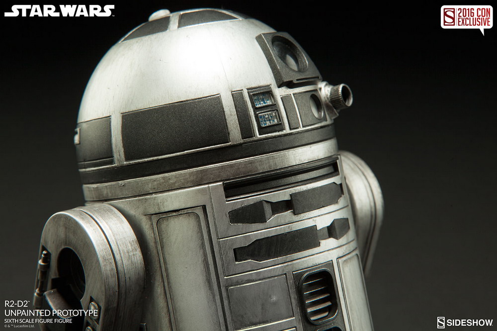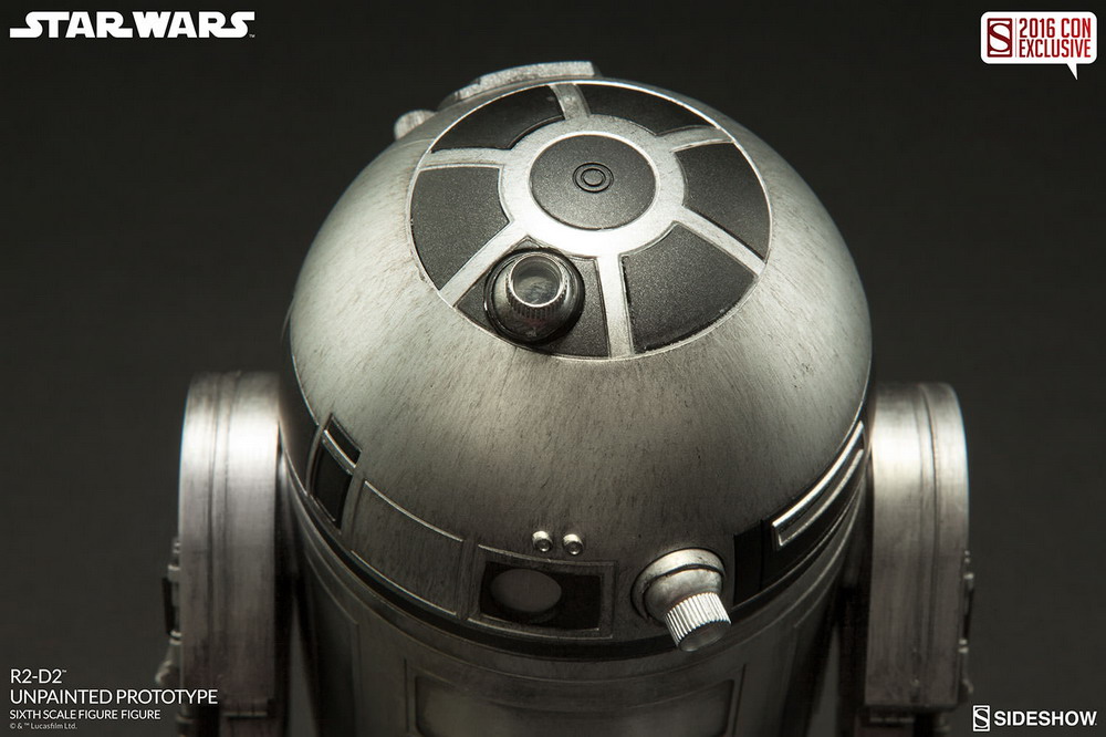 Fresh off the factory line and available only as a San Diego Comic Con exclusive comes Sideshow's R2-D2 "Unpainted Prototype" Sixth Scale Figure.