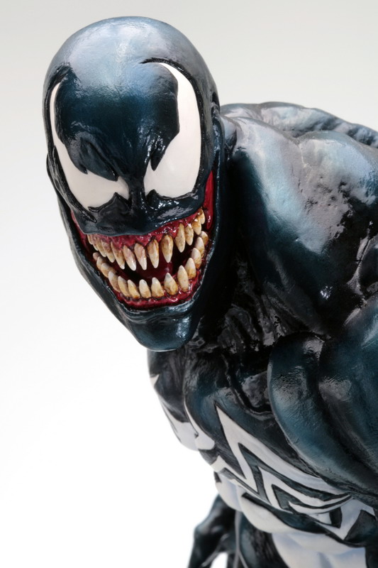 Venom is absolutely massive at 13 inches tall, dominating the Marvel Comics Kotobukiya Collection of Fine Art Statues. He stands atop a specially-designed circular base that lights up with interior LEDs, further enhancing the display options of this amazing villain. Sculpted by Junnosuke Abe, Venom is constructed of high-quality cold cast porcelain and is a limited, numbered edition.