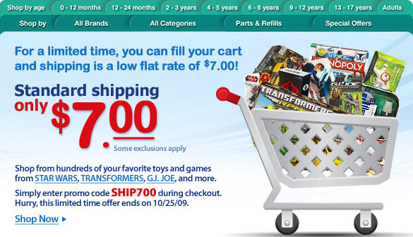 In case anyone here isn't on the Hasbrotoyshop mailing list, check out the latest promotion and save a bunch on shipping!