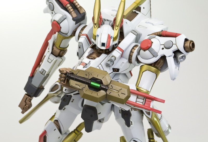 Appearing in Japan's Dengeki Hobby Magazine's novel "Armored Core Brave New World," the WICTORIA is piloted by the main character Koki. The formidable fighting robot is lean and tall, outfitted in stylized armor decorated with fins and intricate mechanical details. Bright white, the Victoria is accented in gleaming gold and red. This special novel version includes a head design not seen in the games at all, as well as special tampo-printed emblems. Like all of the other Armored Core units, the Victoria comes armed with multiple accessories and weapons, including its signature WL 14LB-ELF2 Laser Blade. Standing 8 ½ inches tall, the exclusive robot is comprised of approximately 500 parts and when fully assembled it has 20 points of articulation for extreme poseability.