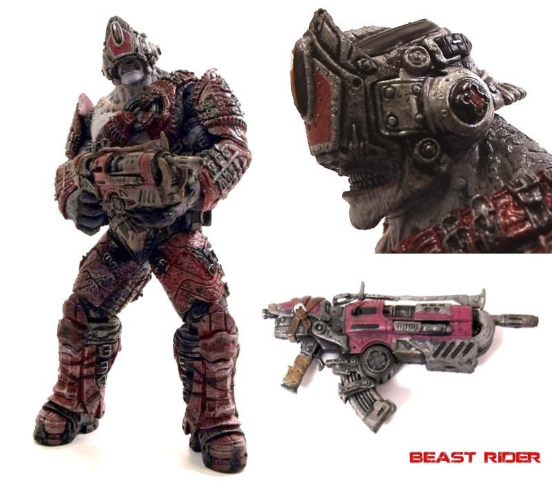 The Cyclops still holds the top spot as my favorite Locust design, but the Grenadier Beast Rider claws in a close second. It's all about the faceless, one-eyed helmet. NECA's recently introduced Grenadier body (i.e. Series 4's Grenadier Elite) doesn't hurt either.