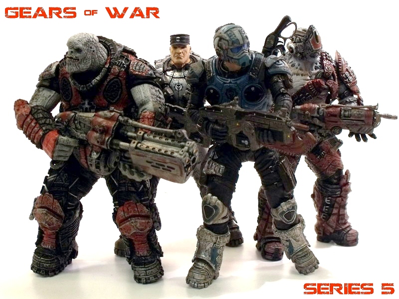 NECA's Gears of War action figures consistently amaze me with each new release. Not only is each series kept surprisingly fresh with fan favorite characters, but ongoing advancements in articulation make posing and collecting these toys a real joy. They just keep getting better and better. Gears of War Series 5 is my favorite assortment yet, a 7" figure wave chock-full of cool sci-fi guns, armor and characters. In stores now, Series 5 includes an all-new hyper-articulated COG Soldier (v.2), gruff COG leader Colonel Victor Hoffman, a helmeted Grenadier Beast Rider, and the series debut of the Boomers, a bigger and tougher class of Locusts, this one armed with the explosive Boomshot.