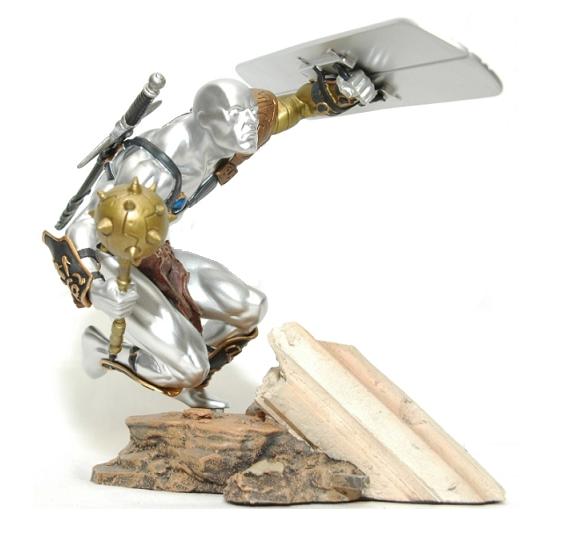 The Surfer's dynamic pose is emphasized by an amazing paint application of a smooth, shiny silver coat which gives his skin an almost mirror appearance. Likewise, his armor, loincloth, and weapons area all masterfully painted with little to no bleeding anywhere.