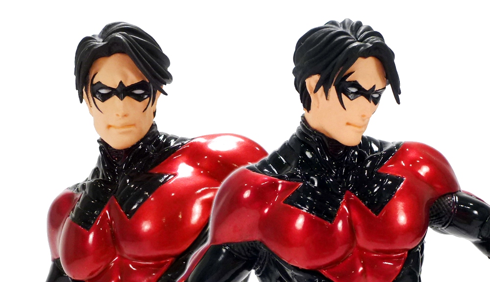 Last year we followed along as Kotobukiya released the first series in a recently debuted scale, the DC Comics New 52 Justice League ARTFX+ statues. Since the initial run brought fans the “Big 7” members of that headlining team, Koto has expanded the lineup to include other popular heroes and villains from the New 52 like Black Adam, Shazam, Catwoman, and Supergirl. Captured in 1/10th scale with magnetic bases, these statues have all of the great details you’d expect from the Japanese company and uniquely styled characters at a lower, and more easily collectible, price point. Today we’ll be taking a look at the next upcoming release in the New 52 ARTFX+ series, Nightwing!