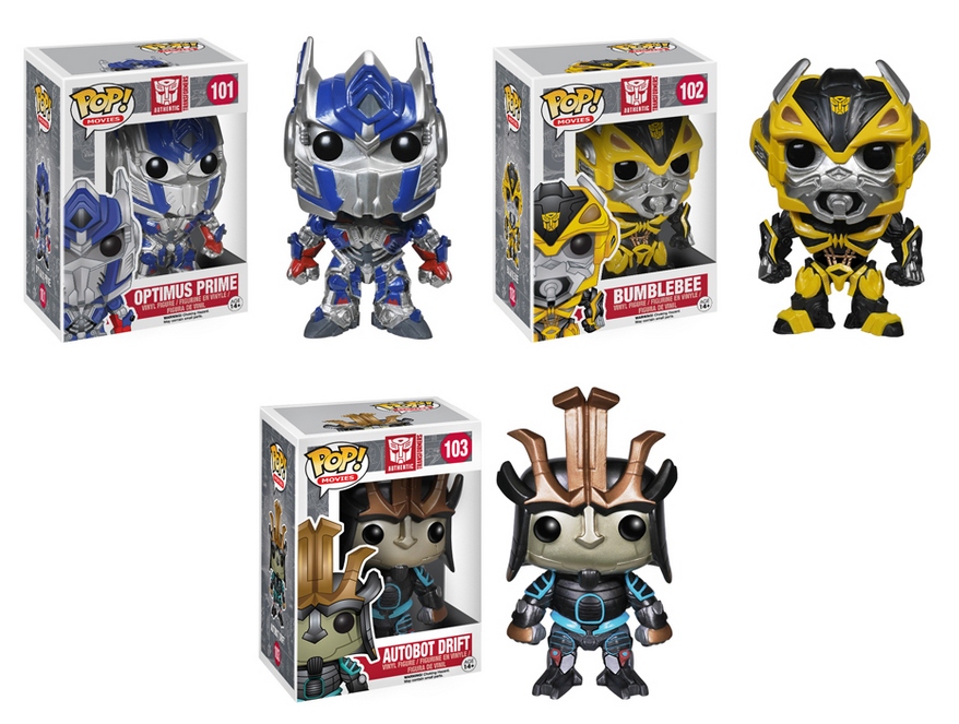 The toy reveals are coming fast and strong now that the June 27th release date for Transformers: Age of Extinction looms closer. Funko is getting in on the action with a trio of POP! vinyl figures. This May assortment stars an all Autobot cast, including heavy hitters Optimus Prime, Bumblebee and Drift. I suspect we'll see some badguys in future waves.