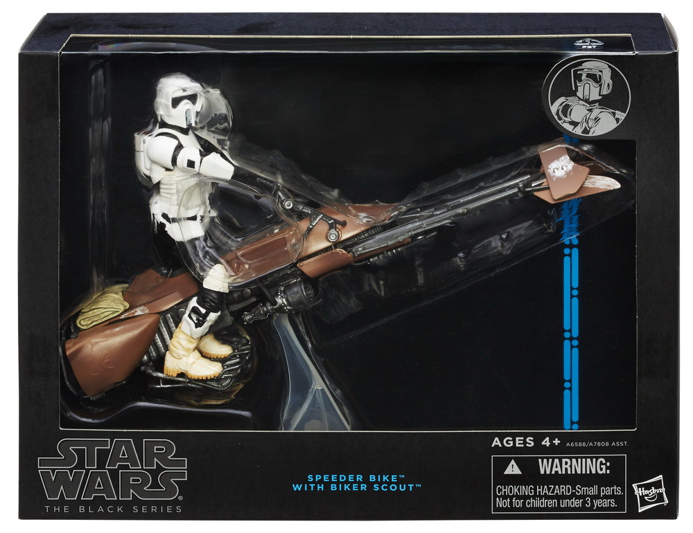 Hasbro passes along new high-res images of their first 6" scale Star Wars Black Series deluxe figures. These include a Boker Scout and Speeder Bike, as well as more photos of Jabba the Hutt previously seen HERE. These will be priced at $39.99 each and are scheduled for a Fall release.