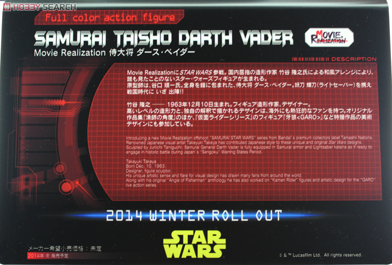 News from the Tokyo Toy Show reveals that Bandai Japan has secured the Star Wars license for their popular S.H. Figuarts series. The first 1/12 scale character releases (sometime in 2015) include Darth Vader and Stromtroopers (pictured above). Most exciting was the unveiling of a new Movie Realization off-shoot series, the first figure being a Samurai Darth Vader (pictured below). This unique interpretation of the Sith Lord is scheduled for release in Japan this winter.