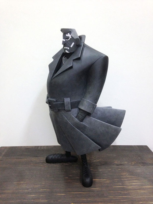 In the same spirit as his previous collaboration with Dark Horse (a vinyl figure of Mike Mignola’s Hellboy) or his Nike-commissioned statue of Michael Jordan, So favors a humorous and cartoonish approach over realism. While Marv is depicted in his customary trench coat, he has been transformed through Eric So’s unique approach to angles and features. Still, the influence of Frank Miller’s signature style shines through.