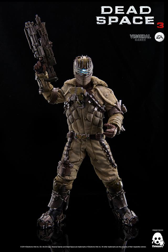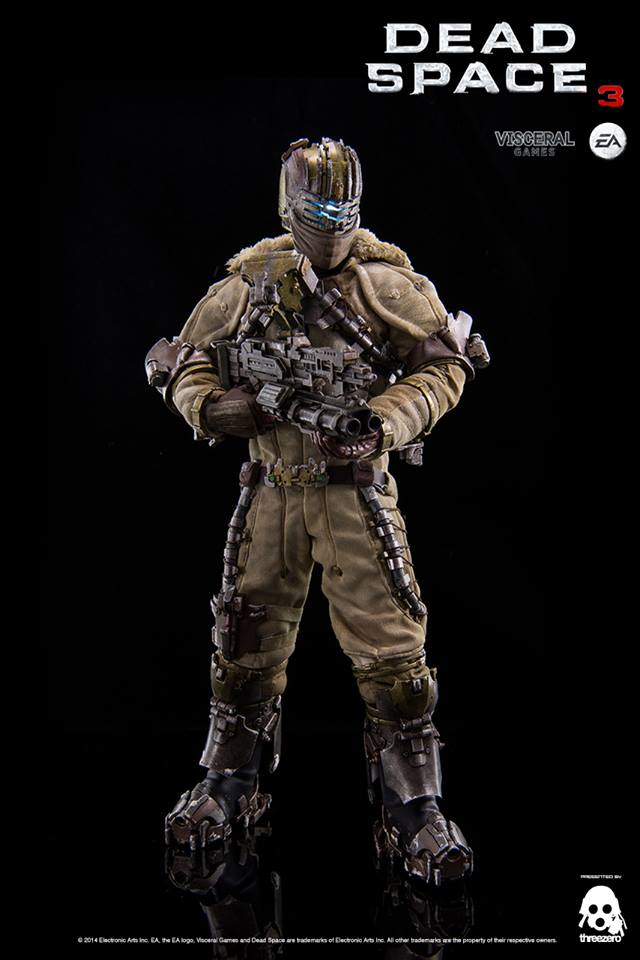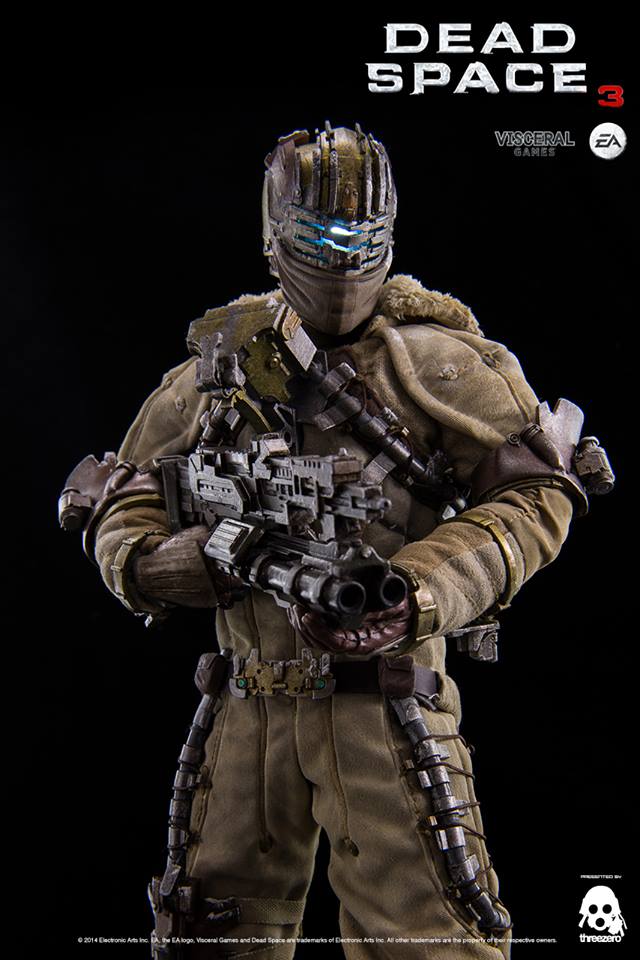 ThreeZero pulls the curtain back on their latest 1:6th scale action figure offering: Issac Clarke as seen in the video game Dead Space 3. Dressed in his arctic RIG suit and armed with his trusty Plasma Cutter and a deadly Aug Shotgun, Isaac will be priced at $190USD ($1480HKD) shipped. Pre-orders start on July 17th 9:00PM EST. An interchangeable Isaac human head is EXCLUSIVE to threezerostore and will not be available anywhere else.