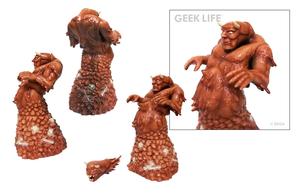 The SEGA RETRO GAME SOFUBI COLLECTION will launch this August with the SEGA Genesis classic Altered Beast, the debut figure being the first stage boss AGGAR! This approximately 9.5 inch-tall figure comes with two switchable heads and a “throwing head” adaptor. Alas, this figure is being sold in Japan ONLY, Aggar priced at ¥ 11,000 (approx. $108USD) through nautsinc.com.