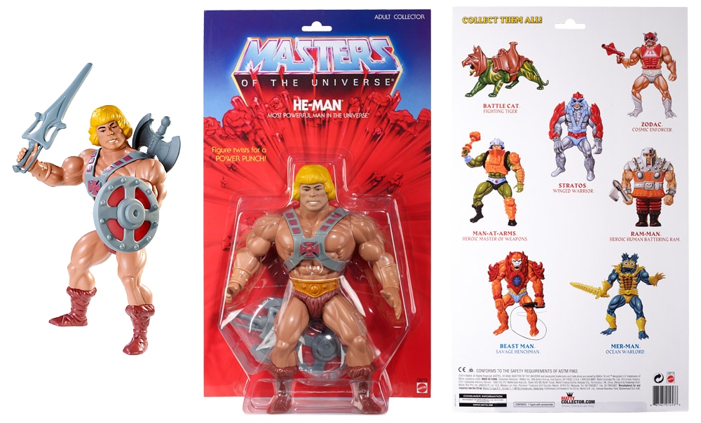 Mattel has released a new video showing off their new Masters of the Universe Giants. He-Man, Skeletor, Stratos & Beast Man make up the first wave, each 12" figure featuring a twist waist power punch, “rubber band” legs, and vintage-style accessories. They come on an oversized vintage-style blister card featuring watercolor cross-sell art from 1982.