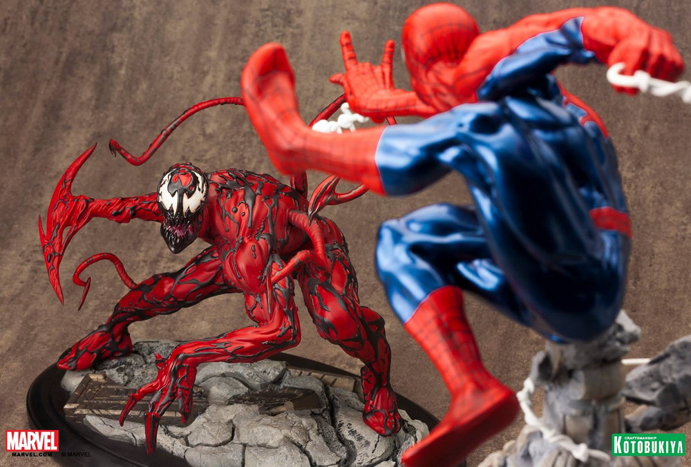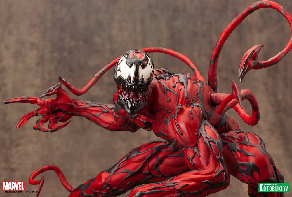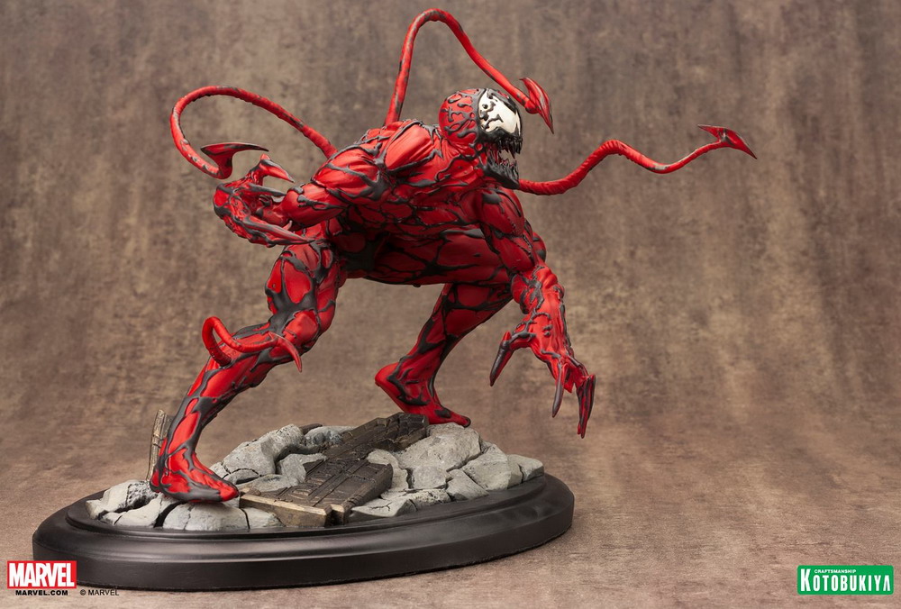 Kotobukiya has released photos of their newest Marvel Fine Art Statue: Maximum Carnage. Based on the sprawling comic book story arc of the same name, Maximum Carnage features interchangable arms for a bladed or clawed look. The alien symbiote, first shown at San Diego Comic-Con (HERE), is scheduled for release in June 2015.