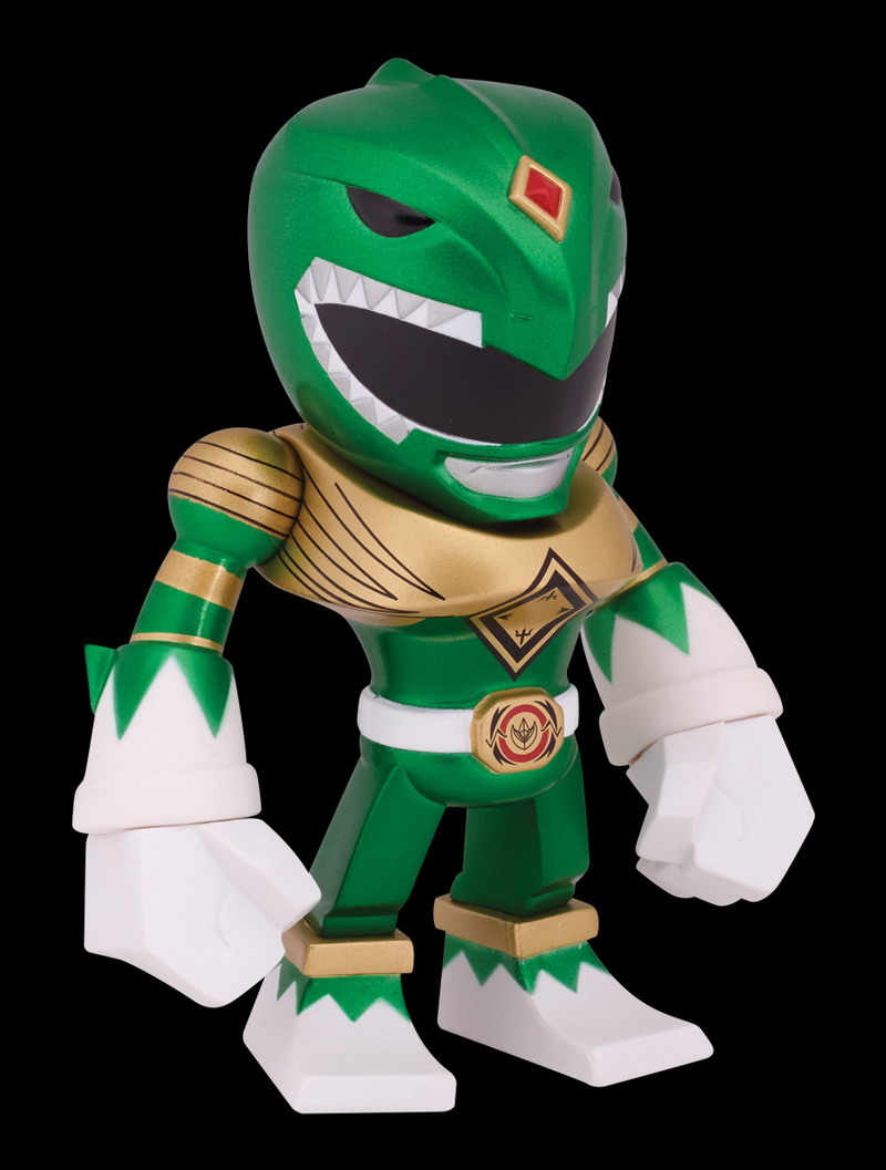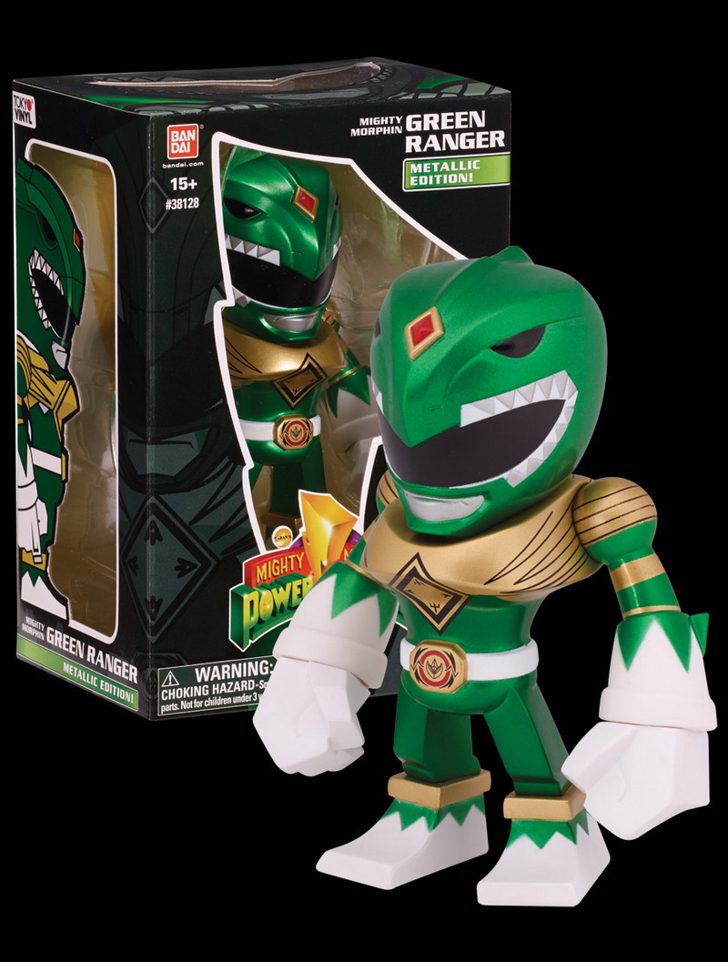 Celebrating more than 20 years of Power Rangers history, the powerful Green Ranger from the original Mighty Morphin Power Rangers series comes to life in an unforgettable design as the Limited Edition Tokyo Vinyl Mighty Morphin POWER RANGERS Metallic Green Ranger. This awesome hyper-stylized figure features the unique chunky styling of the acclaimed Japanese vinyl artist TOUMA, who is renowned in Japan for his character designs. With sharp angular features and oversized forearms and hands, this Power Ranger is a statement in Tokyo pop art. This release of the Green Ranger comes in a metallic version with special edition legacy packaging, making it the perfect addition to any Ranger collection. Available exclusively at the Bandai America booth at New York Comic-Con. Limited quantities available each day.