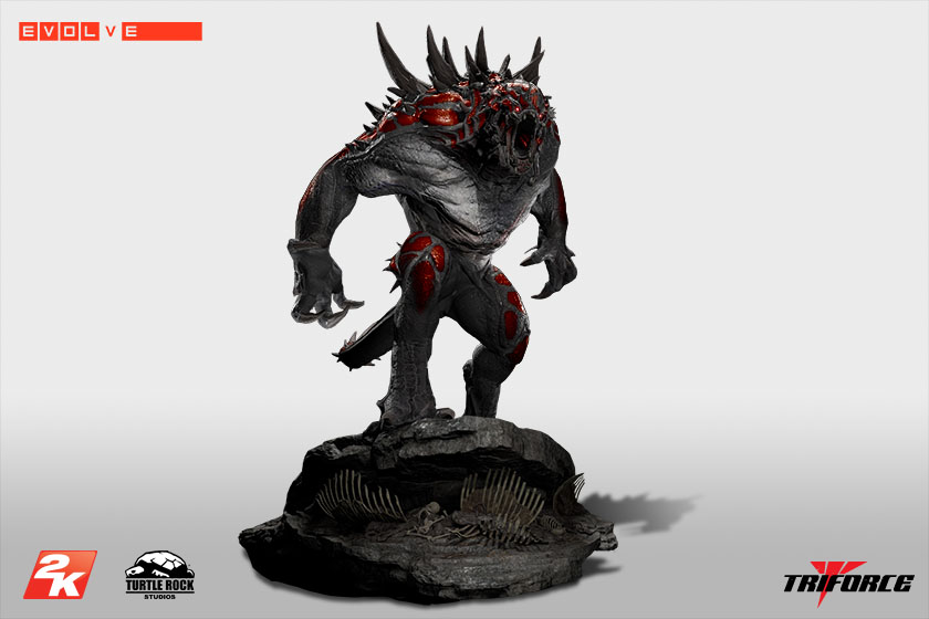 Following TriForce's announcement of a Goliath statue from the upcoming video game Evolve (see HERE), comes a variant that will be sold at New York Comic Con. The NYCC Exclusive Savage Goliath Statue depicts the beast in what appears to be a "powered up" mode with vibrant red paint detail distinguishing the statue from the standard release. Priced at $800, the Savage Goliath is being made available through projecttriforce.com as a limited edition run of only 50 pieces for those not attending New York Comic Con. Those heading to NYCC can pre-order at the show.