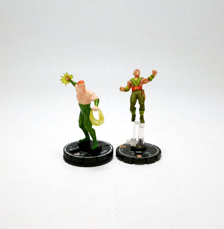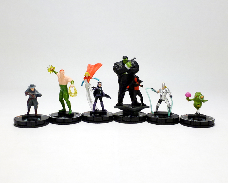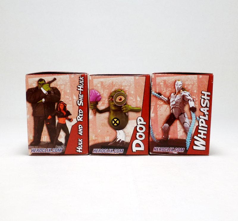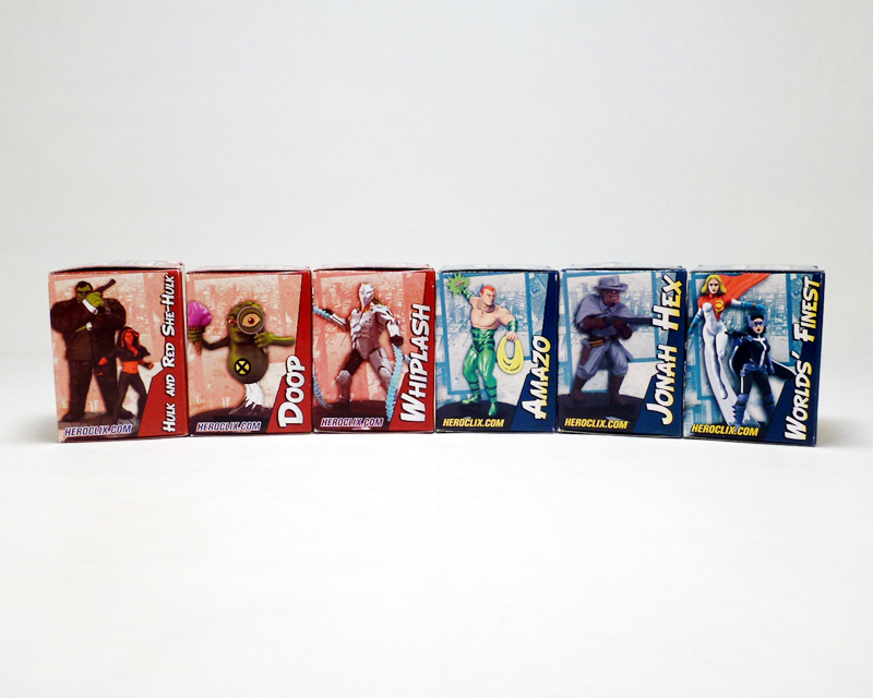 This week we’ve been looking at the figures in WizKids Games’ 2014 HeroClix Monthly OP Kits, which offer cool prizes for players at local venues and stores. Today we’re going a bit beyond that as we go over the truly limited edition figures of this year’s 2014 HeroClix Convention Exclusive Prize Figures! Available to winners of battle royales and other events at big conventions like Origins Game Fair and Gen Con Indy in addition to the multitude of international championships, these are some of the most highly sought after figures each year and bring to the players new takes on characters or those that have never before been in HeroClix. The 2014 batch is particularly interesting for its range of characters and inclusion of duos. On the Marvel side we’ve got Whiplash, Doop, and the duo of Hulk and Red She-Hulk, while DC brings us Amazo, Jonah Hex, and the Earth 2 version of World’s Finest! Read on for an in-depth look at these awesome prize figures.