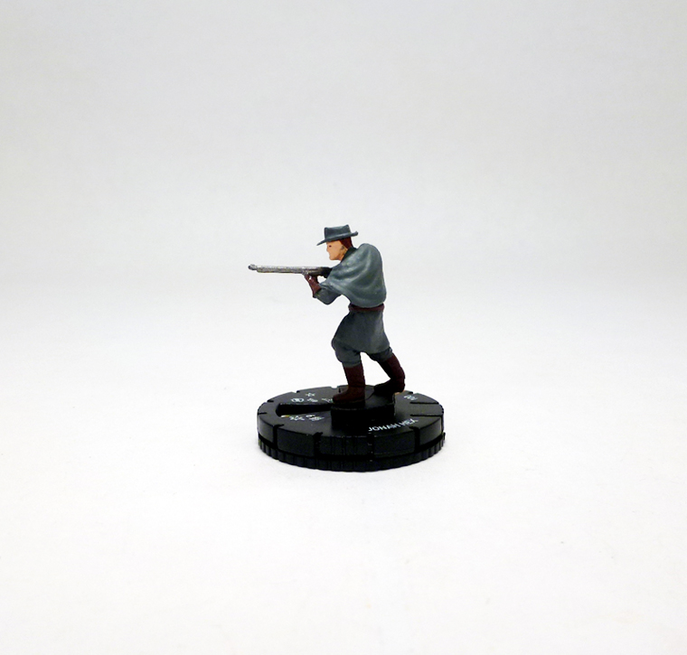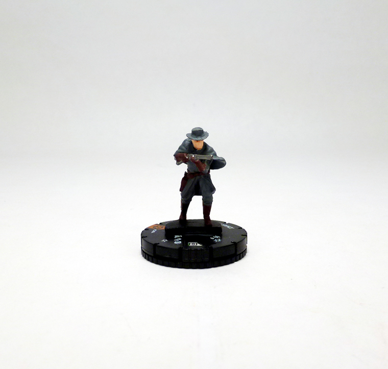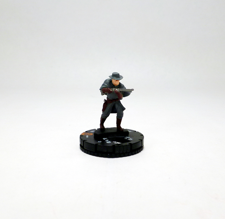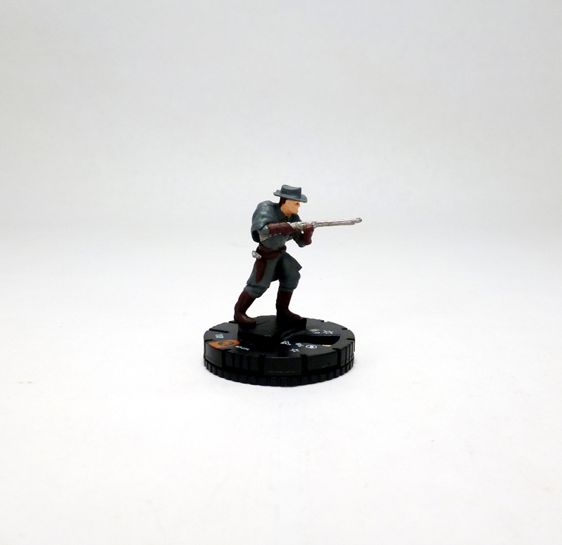 The next DC figure is a blast from the past and another return to a character we haven’t seen in HeroClix for a while, Jonah Hex! The scarred 1800s gunfighter was a unique way back in Collateral Damage, and we got a very playable version based on the questionable film of his name in 2010. A bounty hunter whose adventures have taken him across time and into contact with superheroes like Superman and Batman, Hex had a tragic history of abuse, slavery, and war but was molded into a grim and determined hero. The new figure sees Jonah patiently stalking his prey striding forward with his rifle in both hands. His Confederate uniform covers nearly his entire body and features a wide-brimmed hat, belt with holstered pistol, and of course the distinctive shawl-like wrap. You may have to look closely, but staring out from under that hat is Hex’s half-ruined face complete with sculpted scars.