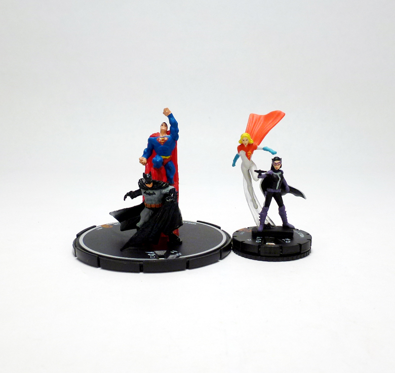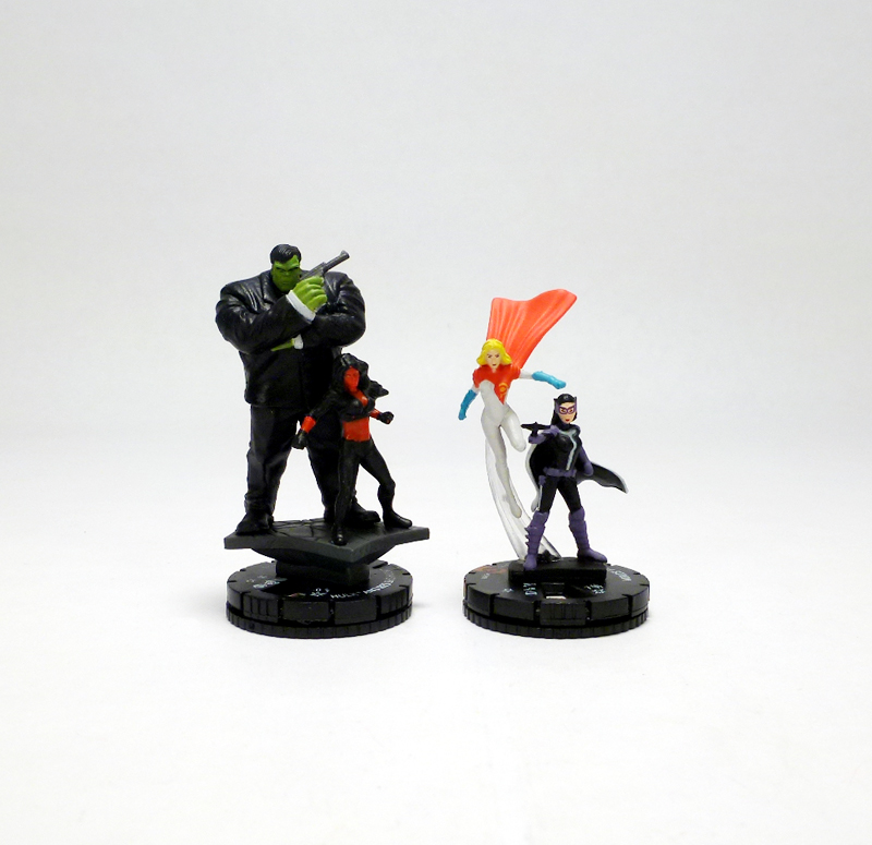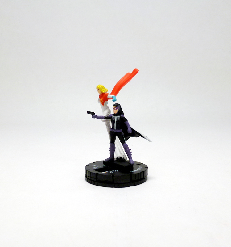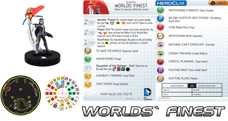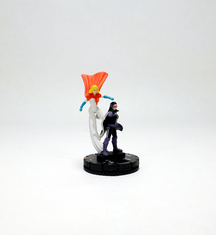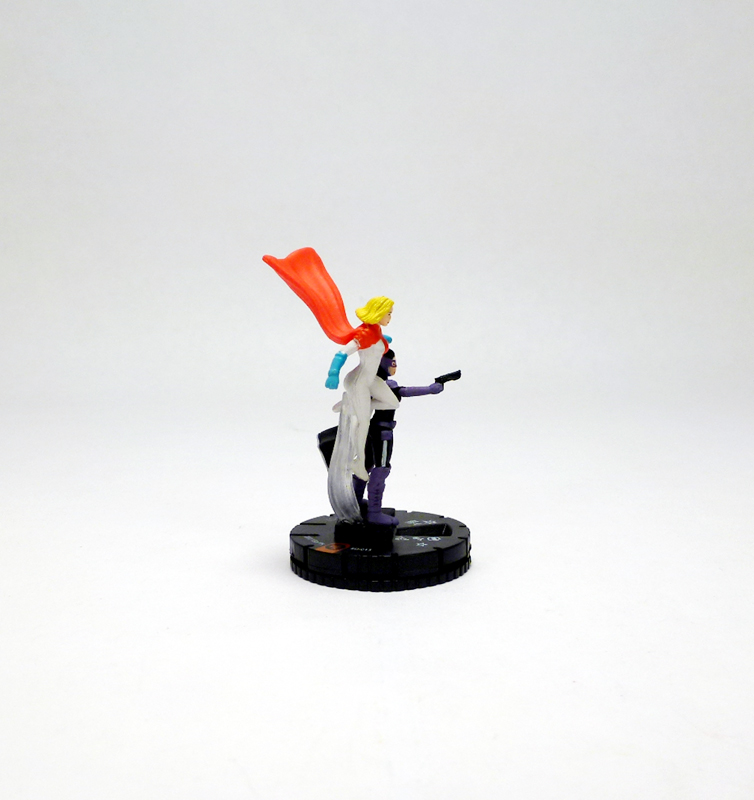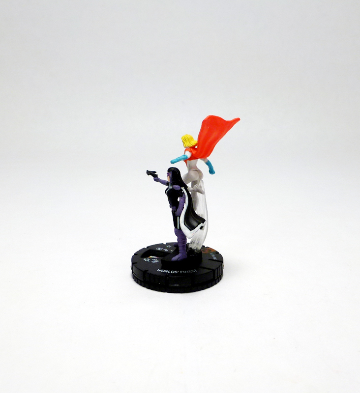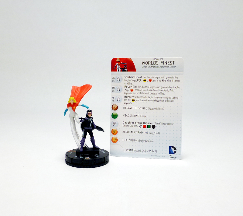 Unlike the previous World’s Finest and most other duo figures, this new pairing got the same kind of treatment as the Colleen Wing and Misty Knight duo from the Amazing Spider-Man set. That is, their dial includes two sections that are distinctly one character and then the next, and it can be played all together as the pair or in part as one or the other! Together World’s Finest is 200 points for 11 clicks of life with Flight, Duo, Indomitable, both Batman and Superman Ally team abilities, and keywords Gotham City, Kryptonian, Martial Artist, and Scientist. Separately Power Girl is 150 points with Flight, Indom, Superman TA, and Kryptonian/Scientist keywords, while Huntress is 75 points with Indom, Batman TA, and the other two keywords; all three versions have a 7 range with two targets. The dial begins with Power Girl’s section featuring high stats and opening Hypersonic Speed, Energy Explosion, and Impervious. She has a solid suite of heavy hitter powers including Charge, Super Strength, Invincible, and Close Combat Expert. Click #7 switches to Huntress who brings a special power (granting Running Shot and Improved Movement ignoring characters and both elevated and hindering terrain) along with Penetrating/Psychic Blast, Combat Reflexes, and Perplex. Later she switches those out for Leap/Climb, Blades/Claws/Fangs, and Super Senses. This World’s Finest is highly playable and extremely versatile with three distinct “figures” in one package.