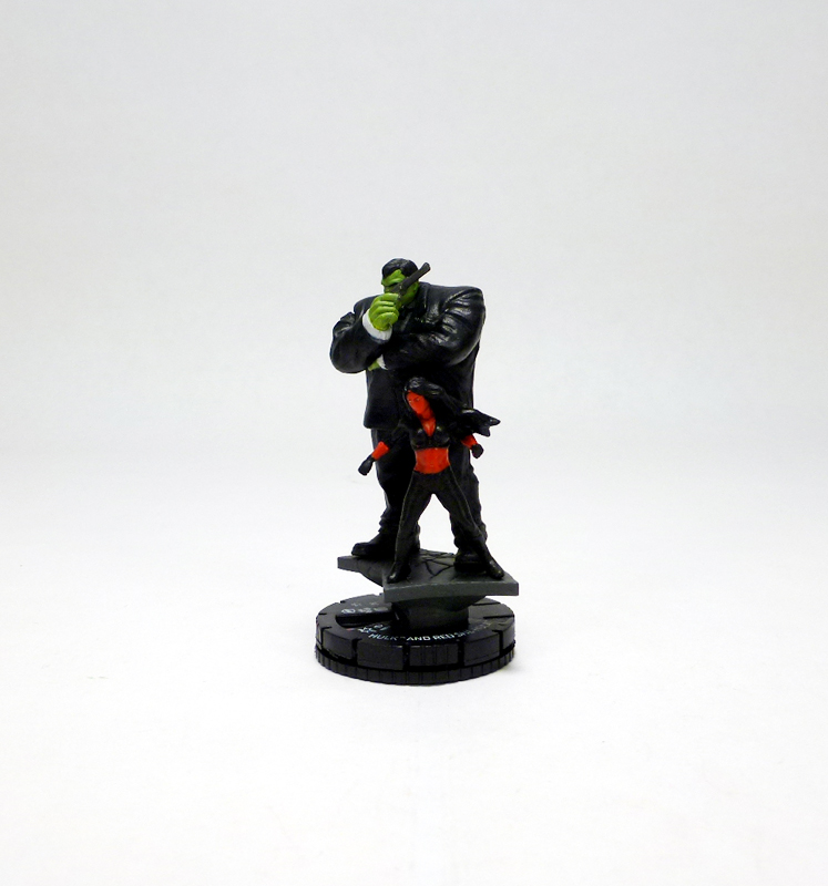 This year was unique in that both the DC and Marvel Con LEs included duos, and they both packed quite the punch. On the Marvel side was the epic pairing of the Hulk and Red She-Hulk! Capturing the cover of The Incredible Hulks #626 by Jock, this huge single-based duo is the perfect representation of the “Mr. & Mrs. Hulk” storyline. The ultimate power couple, Bruce Banner’s Hulk wears a tuxedo while brandishing a pistol while Betty Ross as Red She-Hulk stands in front of him with a no nonsense pose. Putting both figures on one base always makes HeroClix players happy, and the sheer mass and seriousness of the Hulk juxtaposed with the movement in Betty’s stance and hair make it quite visually dynamic. Of course, the splashes of green and red breaking up the wall of black are also neat, as well as the little details like Red She-Hulk’s yellow eyes and the stern expressions on both of their faces.