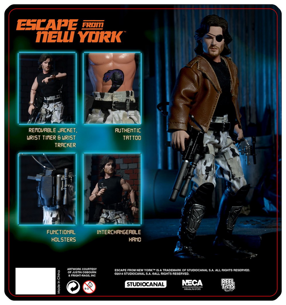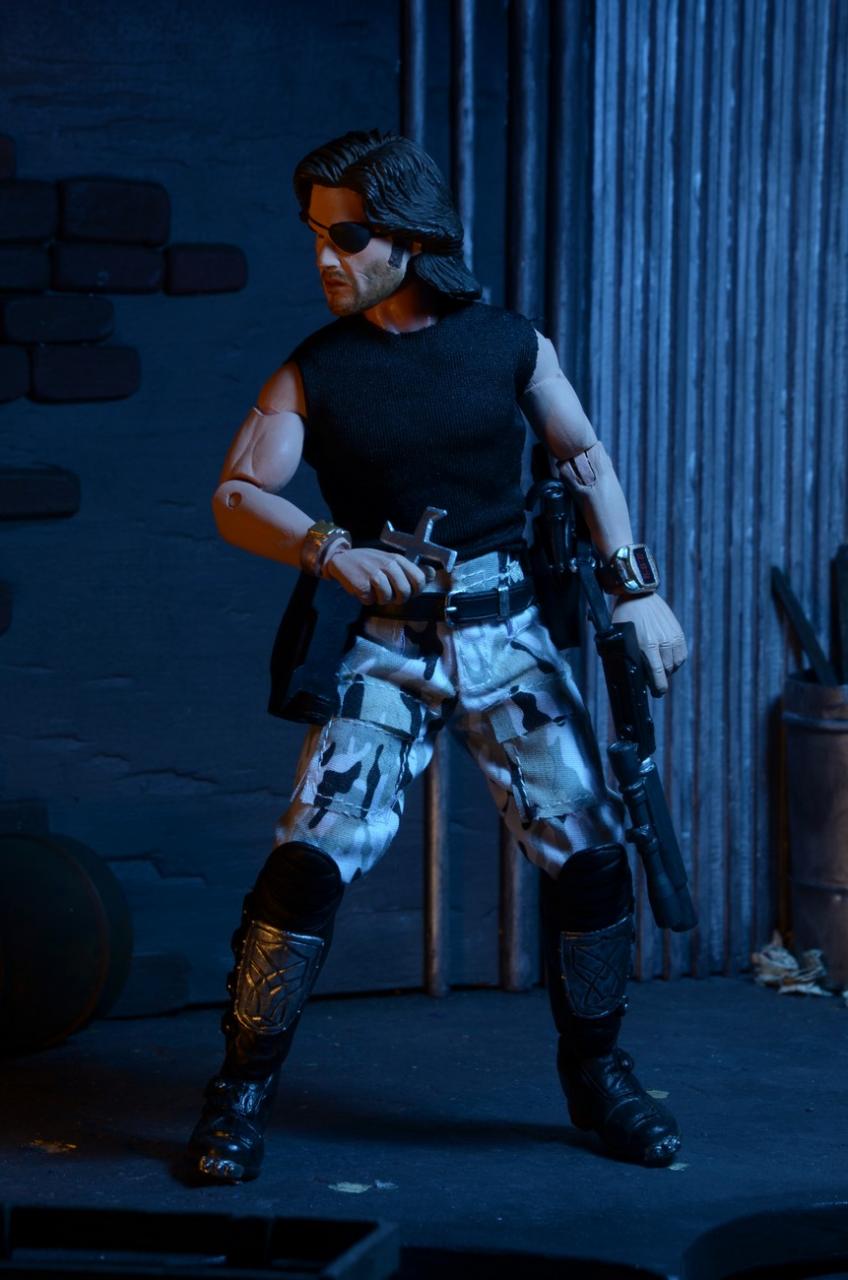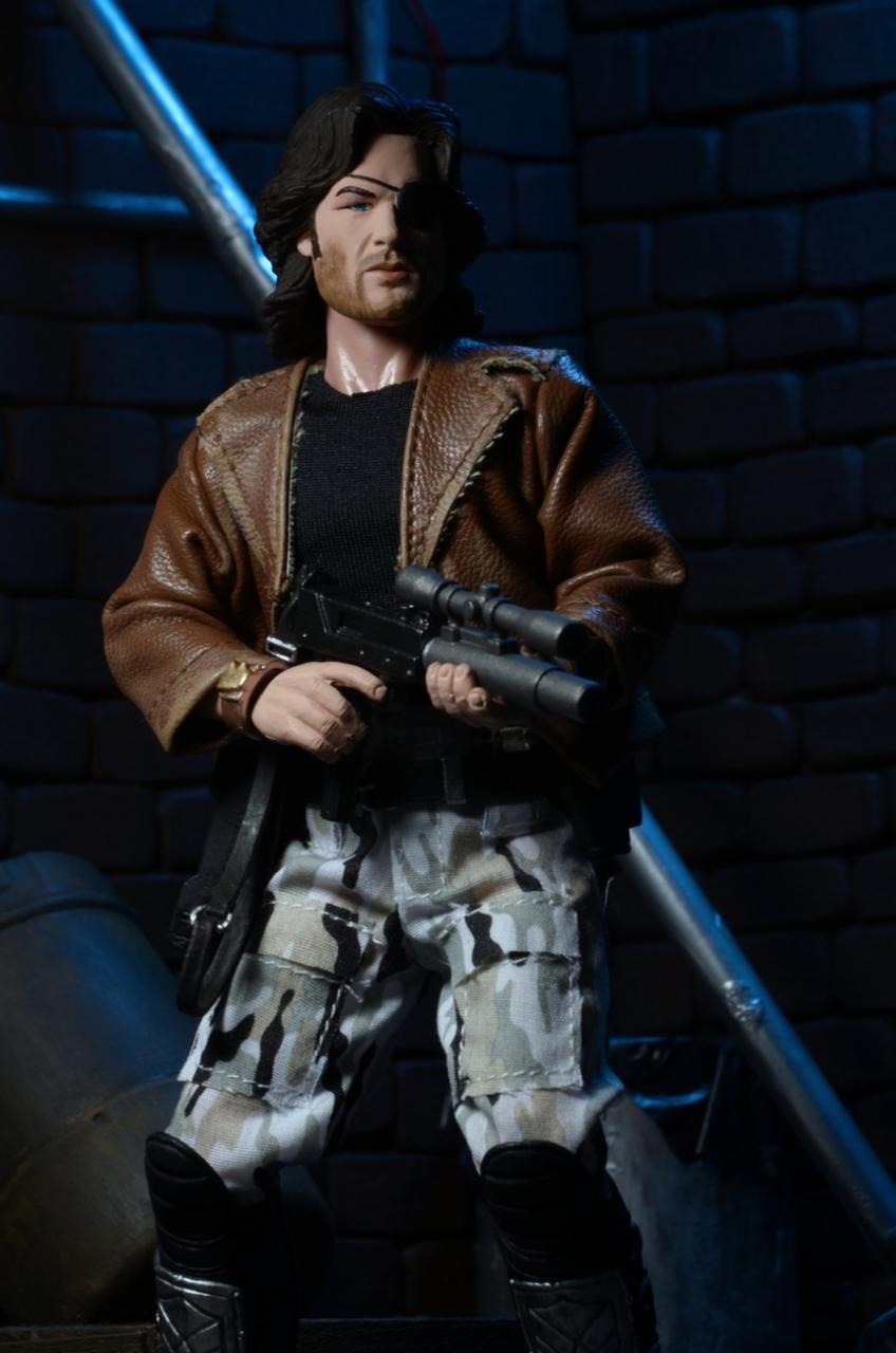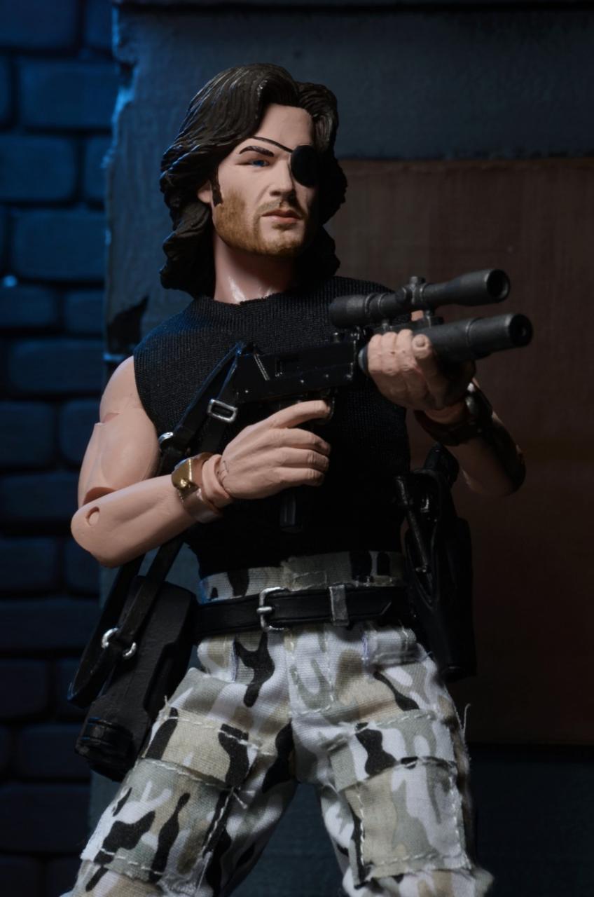 NECA has released new photos of their next 8" Mego-style retro action figure: Snake Plissken from the cult classic film Escape From New York. In stores this January, this poseable 8″ figure comes dressed in fabric clothing similar to the toy lines that helped define the licensed action figure market in the 1970s. Snake wears his iconic camo pants, muscle tee and assault boots and comes with a removable jacket, holster belt, and enough weaponry to take down a small army.
