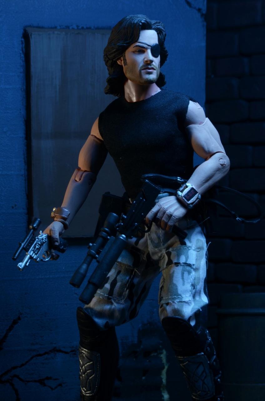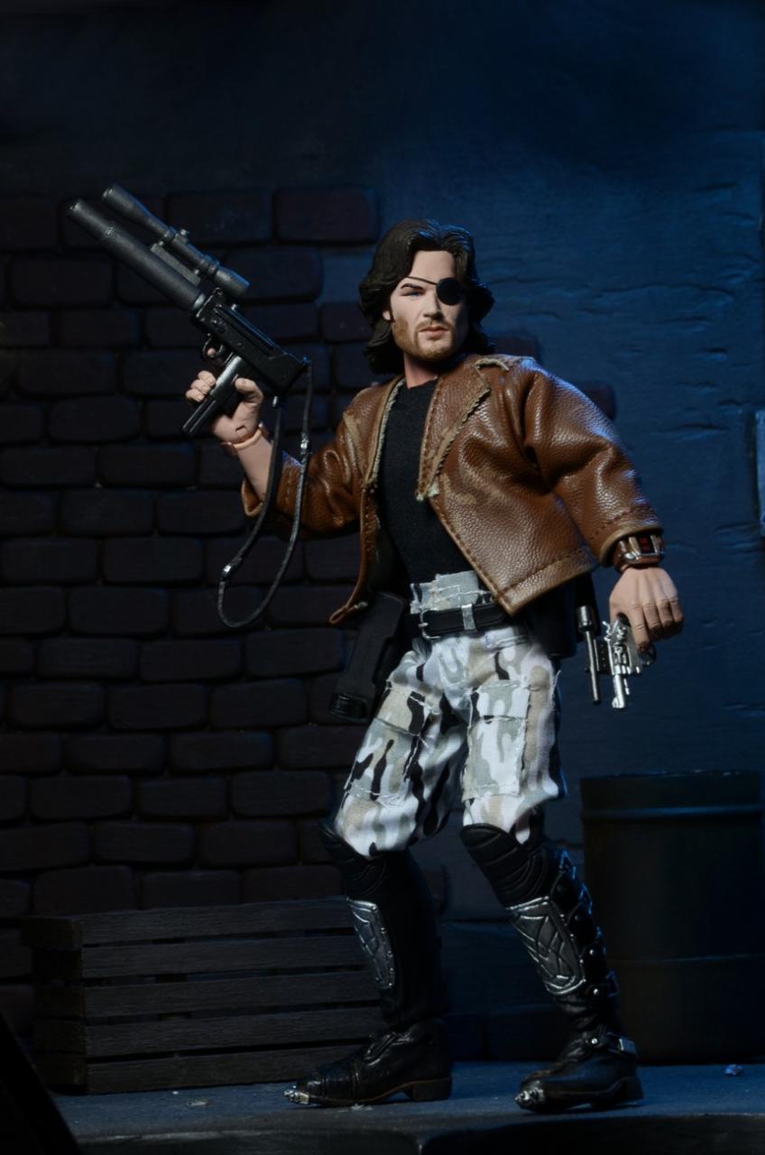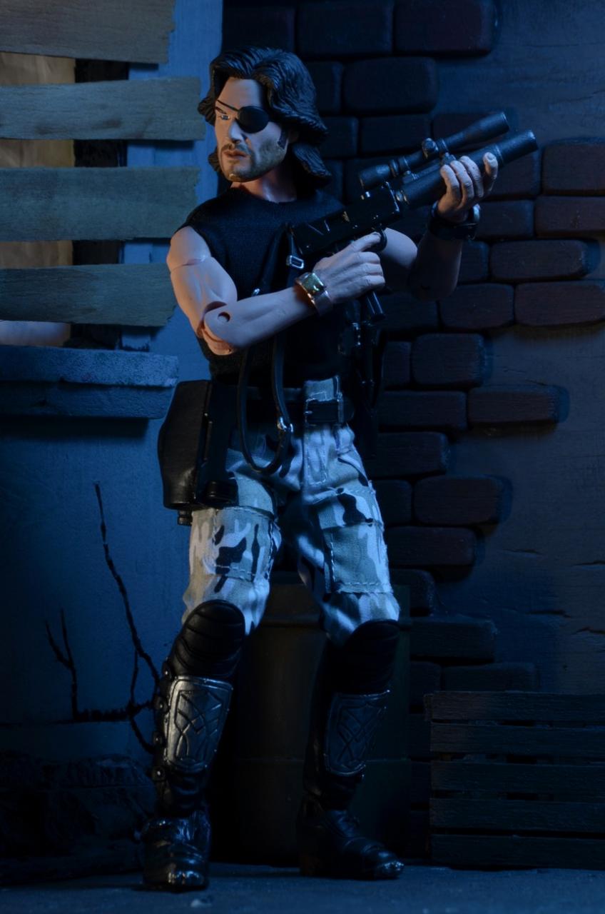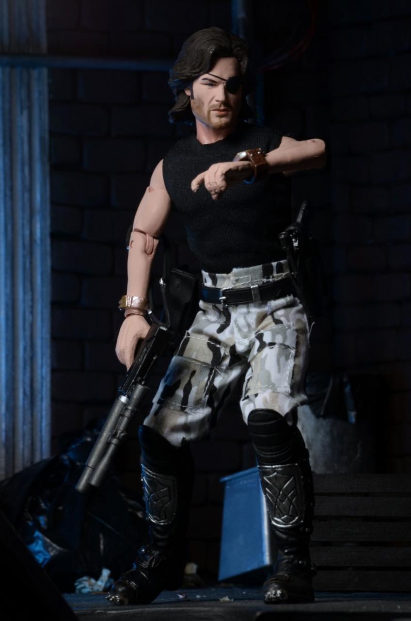 NECA has released new photos of their next 8" Mego-style retro action figure: Snake Plissken from the cult classic film Escape From New York. In stores this January, this poseable 8″ figure comes dressed in fabric clothing similar to the toy lines that helped define the licensed action figure market in the 1970s. Snake wears his iconic camo pants, muscle tee and assault boots and comes with a removable jacket, holster belt, and enough weaponry to take down a small army.