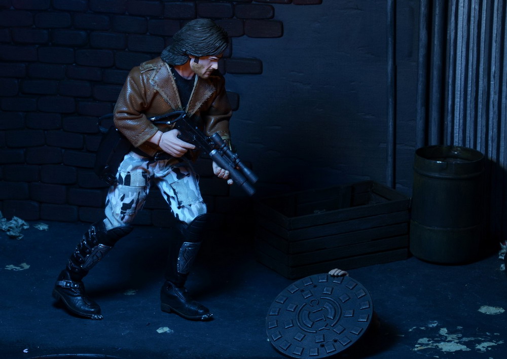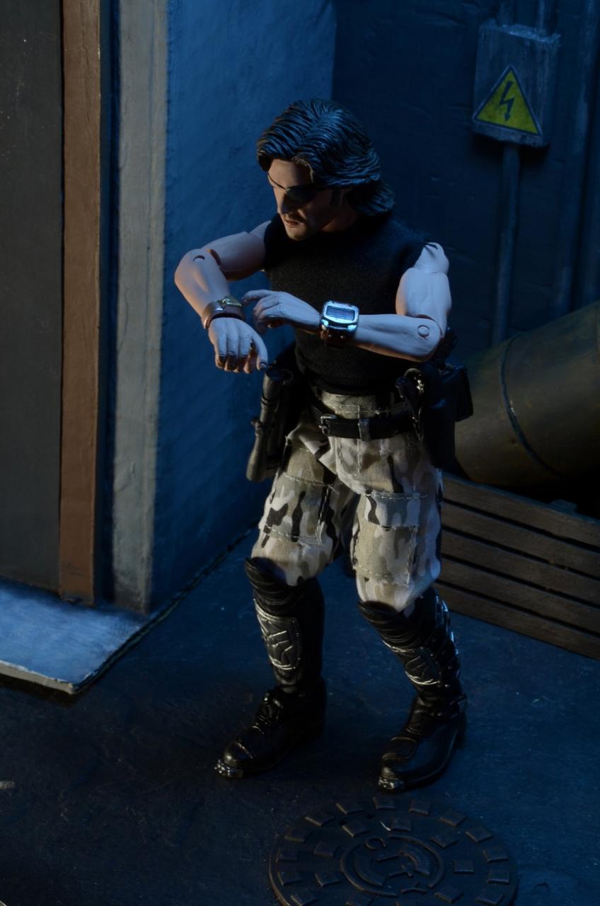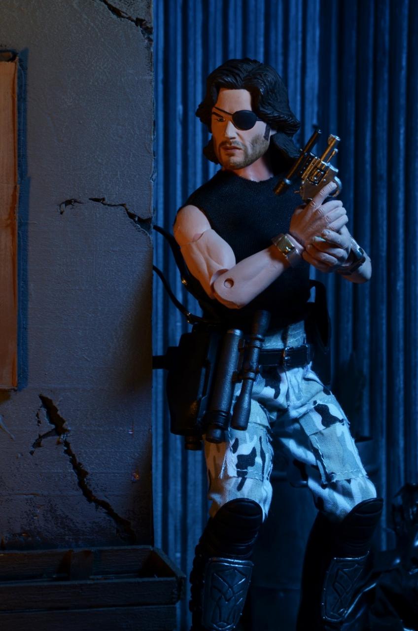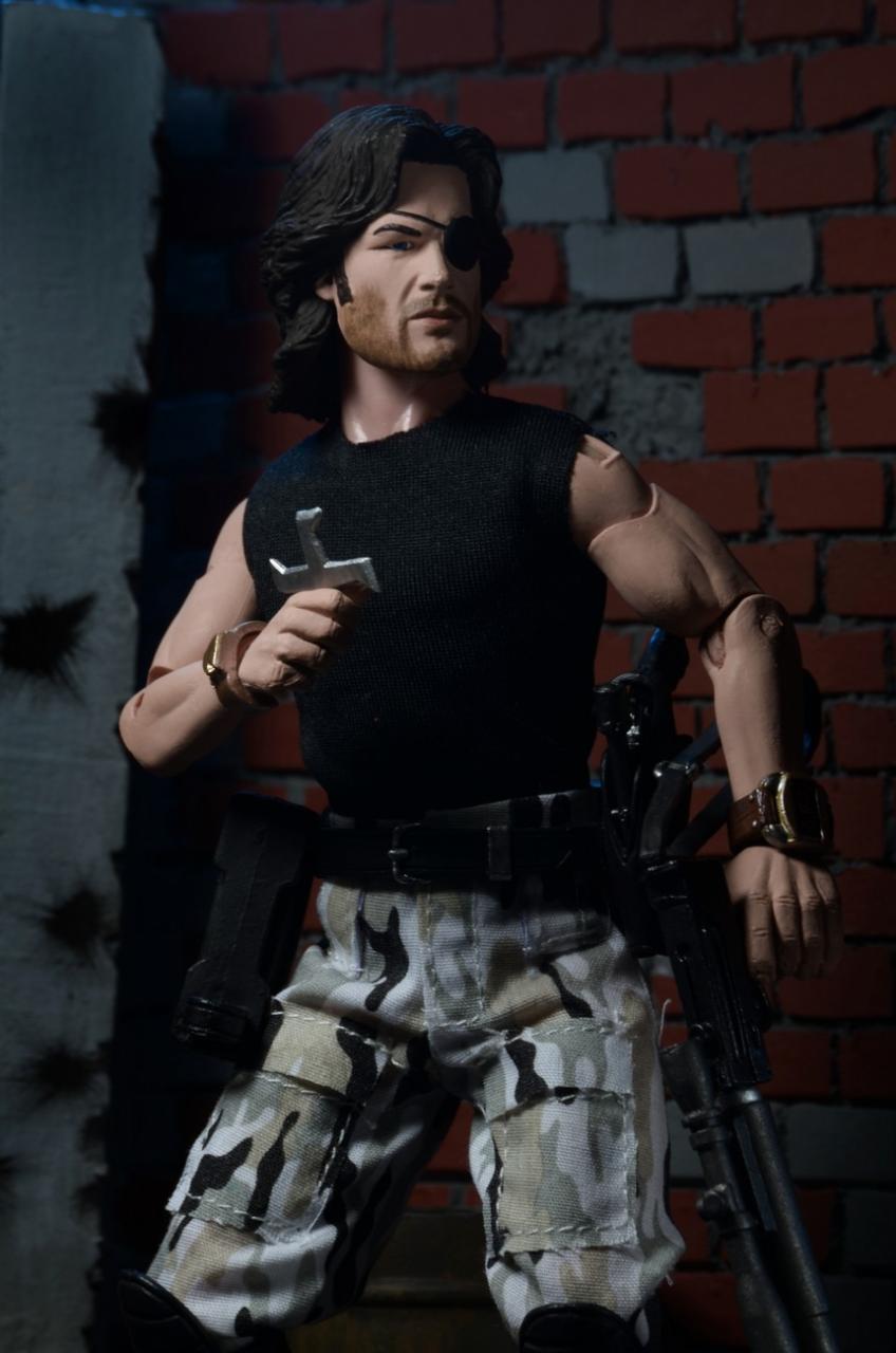 NECA has released new photos of their next 8" Mego-style retro action figure: Snake Plissken from the cult classic film Escape From New York. In stores this January, this poseable 8″ figure comes dressed in fabric clothing similar to the toy lines that helped define the licensed action figure market in the 1970s. Snake wears his iconic camo pants, muscle tee and assault boots and comes with a removable jacket, holster belt, and enough weaponry to take down a small army.