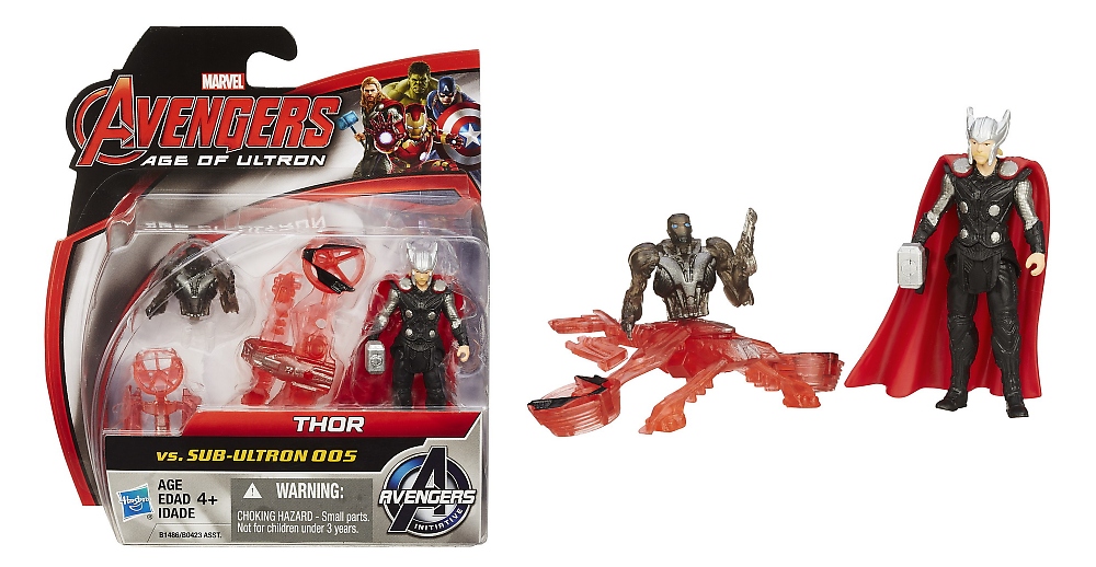 Join the battle with the Super Heroes of Marvel’s Avengers: Age of Ultron and stop Ultron! Each figure 2-pack features a 5 point articulated 2.5-inch, movie-accurate Avengers Super Hero facing off with a two piece sub-Ultron figure. Kids can collect the sub-Ultron figures to build their own larger figure! Characters include