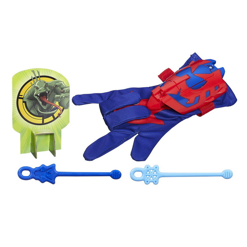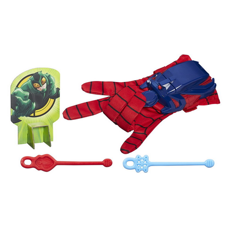 Imagine SPIDER-MAN adventures at a whole new level with this incredible Color Shock Slinger! Kids will be able to fire web fluid like their favorite web-crawling Super Heroes when they pull on the glove and attach the gauntlet. Kids can choose from different characters, including SPIDER-MAN, ULTIMATE SPIDER-MAN and IRON SPIDER, each with their own unique web fluid color. All out of Spidey Shot and surrounded by villains? No problem! The Ultimate Spider-Man Color Shock Slinger includes a special water canister. Load it in and you're ready to soak the bad guys and save the city! Each sold separately.