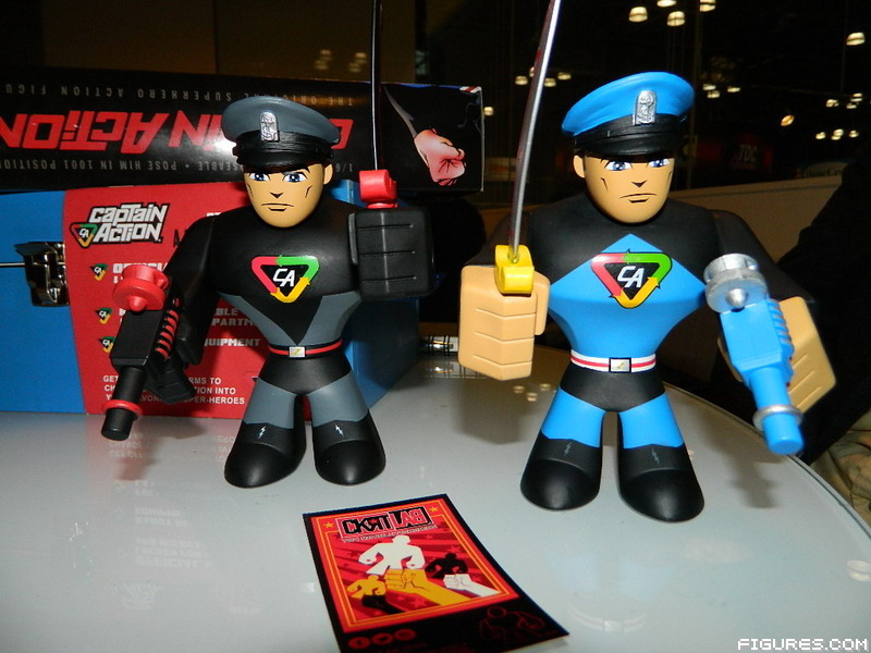 Captain Action was patrolling the Toy Fair convention halls, showing off some exciting new items that will make their debut at Chicago Comic & Entertainment Expo (C2E2). To be held April 24-26, the three day event will offer fans the first-ever Captain Action vinyl figure produced by CKRTLAB Toys (see our story HERE). Priced at $25, the classic Captain decked out in blue will be available for purchase at CKRTLAB Toys' booth #557 and through select comic retailers after the show. Most exciting is the Black Ops version of Captain Action which will be exclusive to C2E2. This limited edition vinyl figure (run size to be determined) stars the Captain dressed in midnight black attire. Any remaining exclusive Black Ops Captain Action vinyl figures will be offered by CKRTLAB after the show (I don't expect many will be left). Captain Action Enterprises and CKRTLAB Toys expressed to me at Toy Fair their plans to expland the vinyl line beyond Captain Action in the future. Just a few characters to receive the stylized vinyl toy treatment include Dr. Evil and Action Boy.