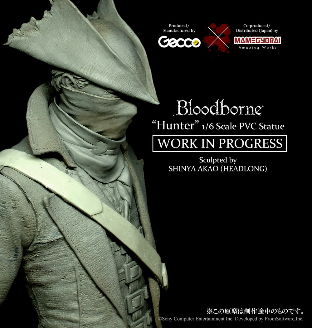 Today, Sony Computer Entertainment Inc. held a special event in Tokyo for the upcoming video game Bloodborne. As part of the presentation, a new 1:6th scale statue of the game's protagonist - the "Hunter" - was unveiled for the first time to the public. The striking statue was produced by Gecco, the Japanese figure manufacturer responsible for the Metal Gear Solid Snake Statue HERE, and will see distribution through Sentinel outside of Japan. The sculpture, still a work in-process, was sculpted by Akao Shinya, who also sculpted Gecco's Raiden, Red Pyramid Thing, and Robbie the Rabbit.