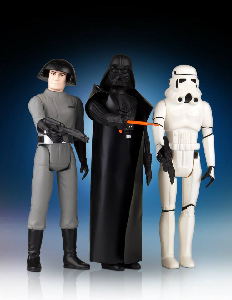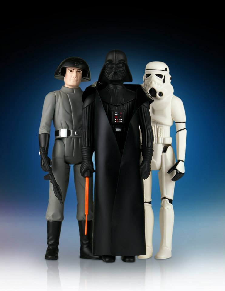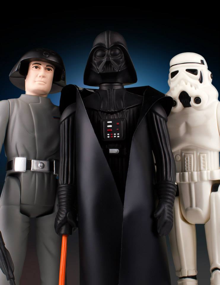 Also arriving next year will be a Star Wars Villain 3-Pack. Priced at $199, collectors will receive three past Jumbo figure releases, including Darth Vader, Stormtrooper and Death Squad Commander. Where Logray will arrive in a super-sized reproduction of his Return of the Jedi blister card, this 3-pack will come in a Star Wars: A New Hope-inspired window box packaging featuring original photos and artwork.