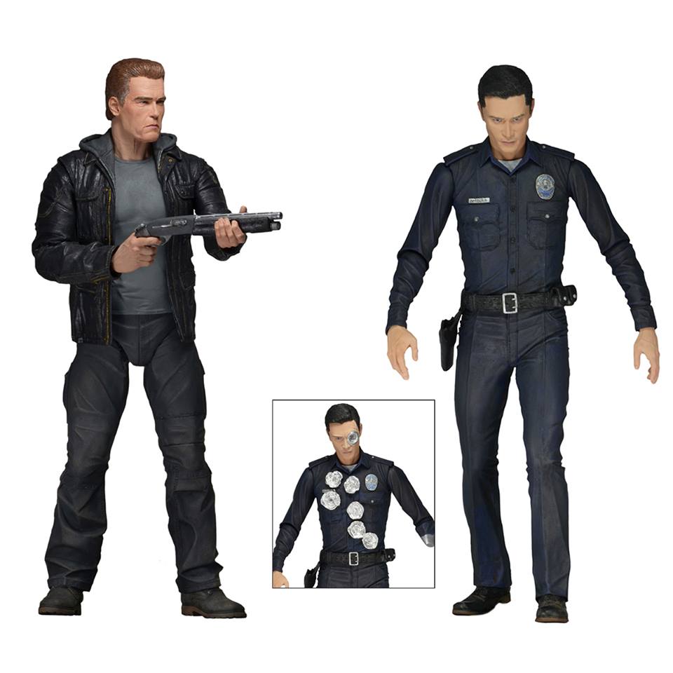NECA has unveiled two new 7" scale action figures based on the upcoming Terminator: Genisys movie. The new assortment for the Skydance Productions feature will include the Guardian T-800 and the T-1000, both with over 25 points of articulation and awesome accessories. The older Guardian T-800 is sculpted with the likeness of actor Arnold Schwarzenegger and comes with Remington shotgun accessory. The T-1000 figure features the likeness of Byung-hun Lee and comes with interchangeable battle-damaged parts, plus revolver and “arm spear” accessories.