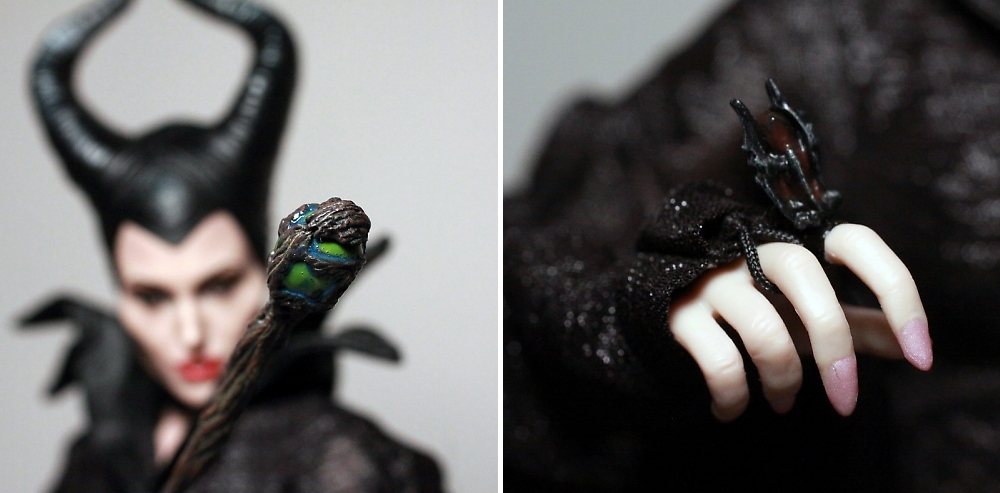 The trickiest thing about swapping palms on Maleficent is that her costume has a little hook that goes over her middle finger to complete the look. Putting that on and removing it is quite the chore. After a few hand swaps, I decided to pick the hands I wanted to display and left it at that.