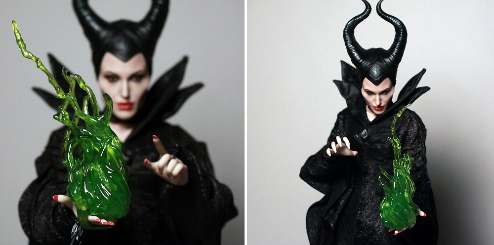 The sculpt if a very accurate likeness of Angelina Jolie in her horned headdress. Comparing her look with scenes from the film, I think they did the best that could possibly be done. The paintwork on the head is clean and more than acceptable. While I’ve seen some amazing customs online, you won’t look into this wishing there was more to it. At least that wasn’t the first thing I noticed.