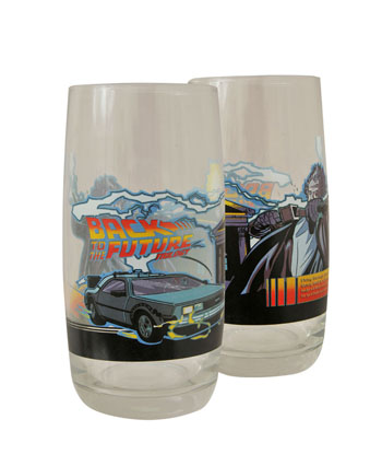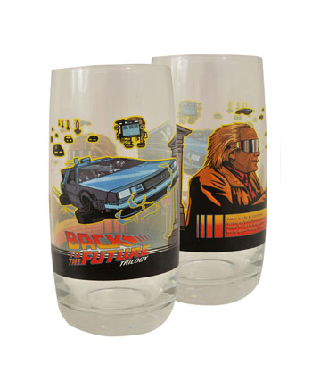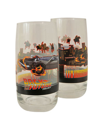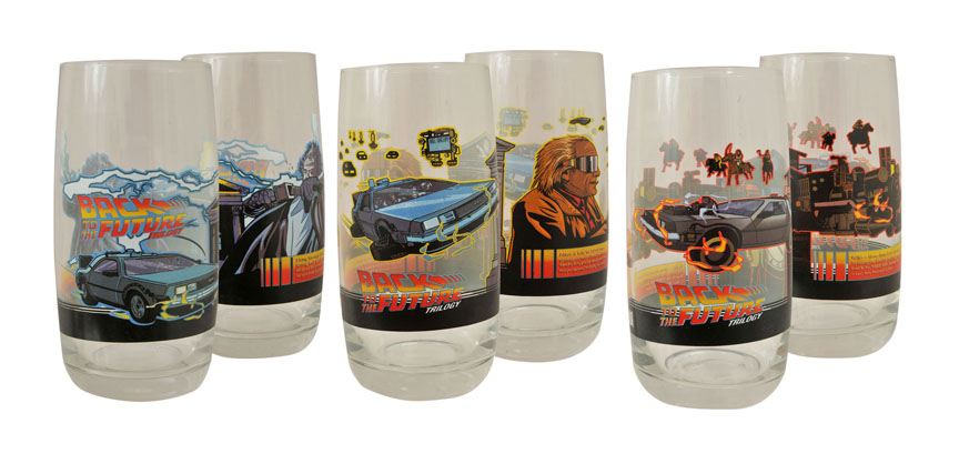 Ring in the new year(s) in style with these three Back to the Future Reelware glass tumblers, featuring all-new artwork capturing the most exciting moments of the BTTF trilogy! From the first movie, Doc Brown connects the crucial power cords in 1955! From the second film, the Time Machine cruises the skyways in 2015! And from the third film, the arrival of the Time Train from 1885! Collect all three glasses to complete the trilogy – you’ll feel like you’re drinking in a different century with each one! Package in a full-color window box.
