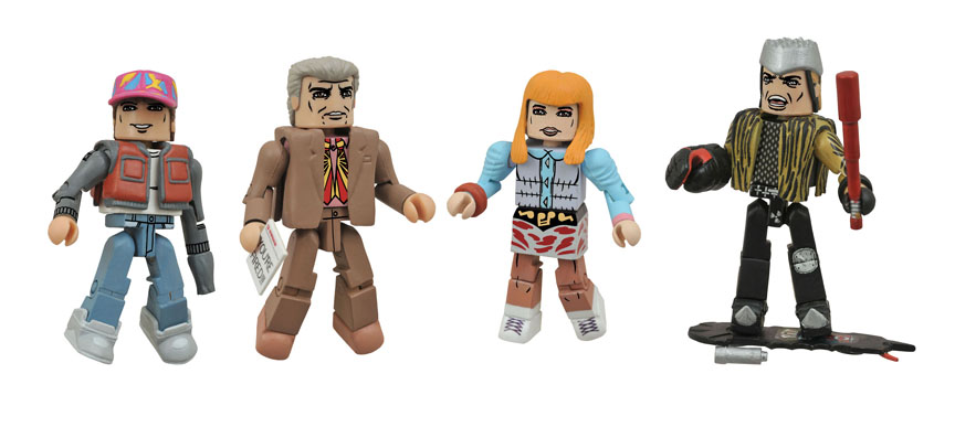 It’s time for Minimates to go back to the future! DST is revisiting their popular Back to the Future Minimates mini-figure line, with new box sets featuring never-before-made characters! First up is a brand new set from 2015, featuring three all-new characters **-- Griff Tannen, Marlene McFly and Marty McFly, Jr. -- plus a new figure of two-tie-wearing Marty McFly, Sr.! Each Minimates mini-figure features 14 points of articulation and interchangeable parts and accessories, including Griff’s Pit Bull hoverboard. Packaged in a full-color blister card. Designed by Art Asylum! (Item #JUL152197, SRP: $19.99)